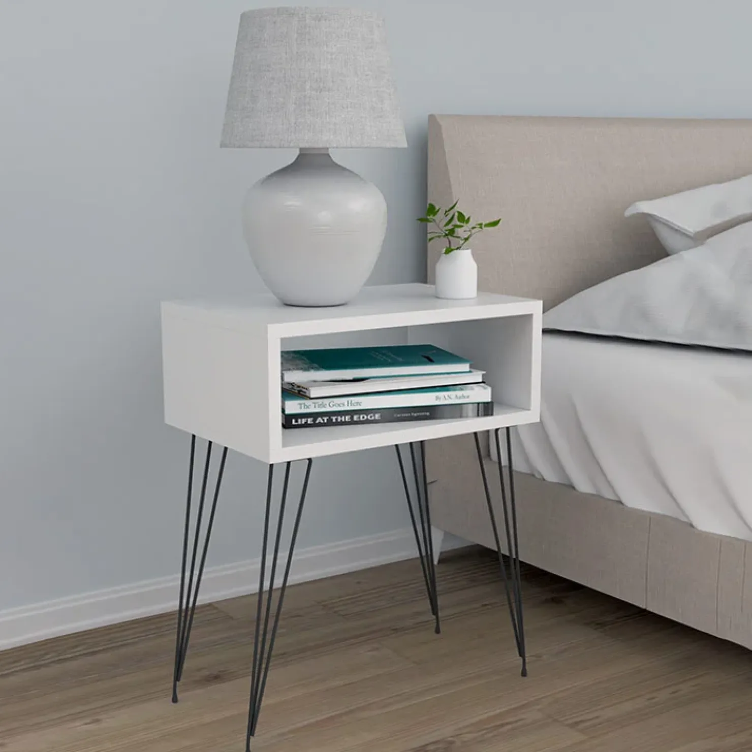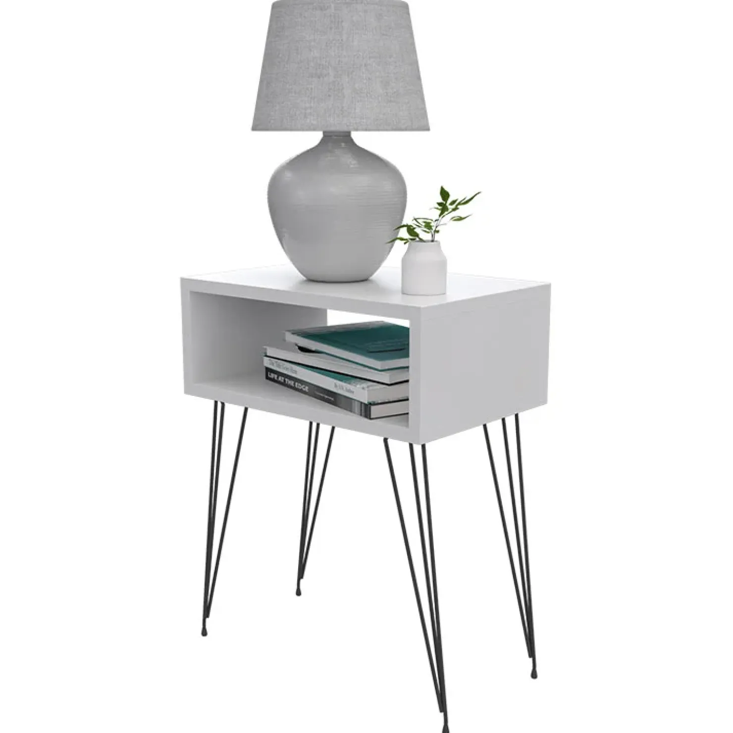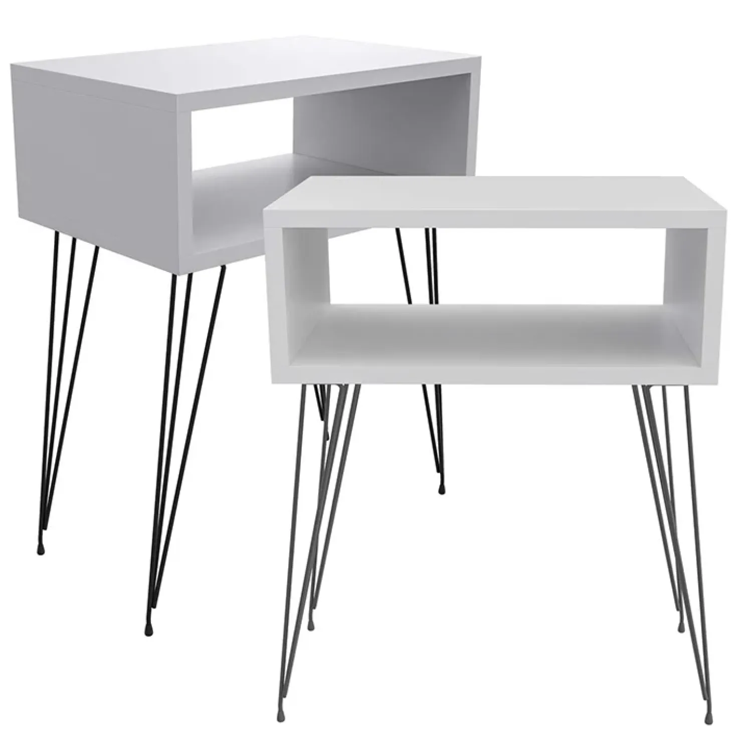 Con il Set 2 comodini moderni design industrial bianco Jamar potrai allocare riviste, libri o qualsiasi ogetto vicino al tuo letto. Pratico e funzionale, il suo stile è industrial.