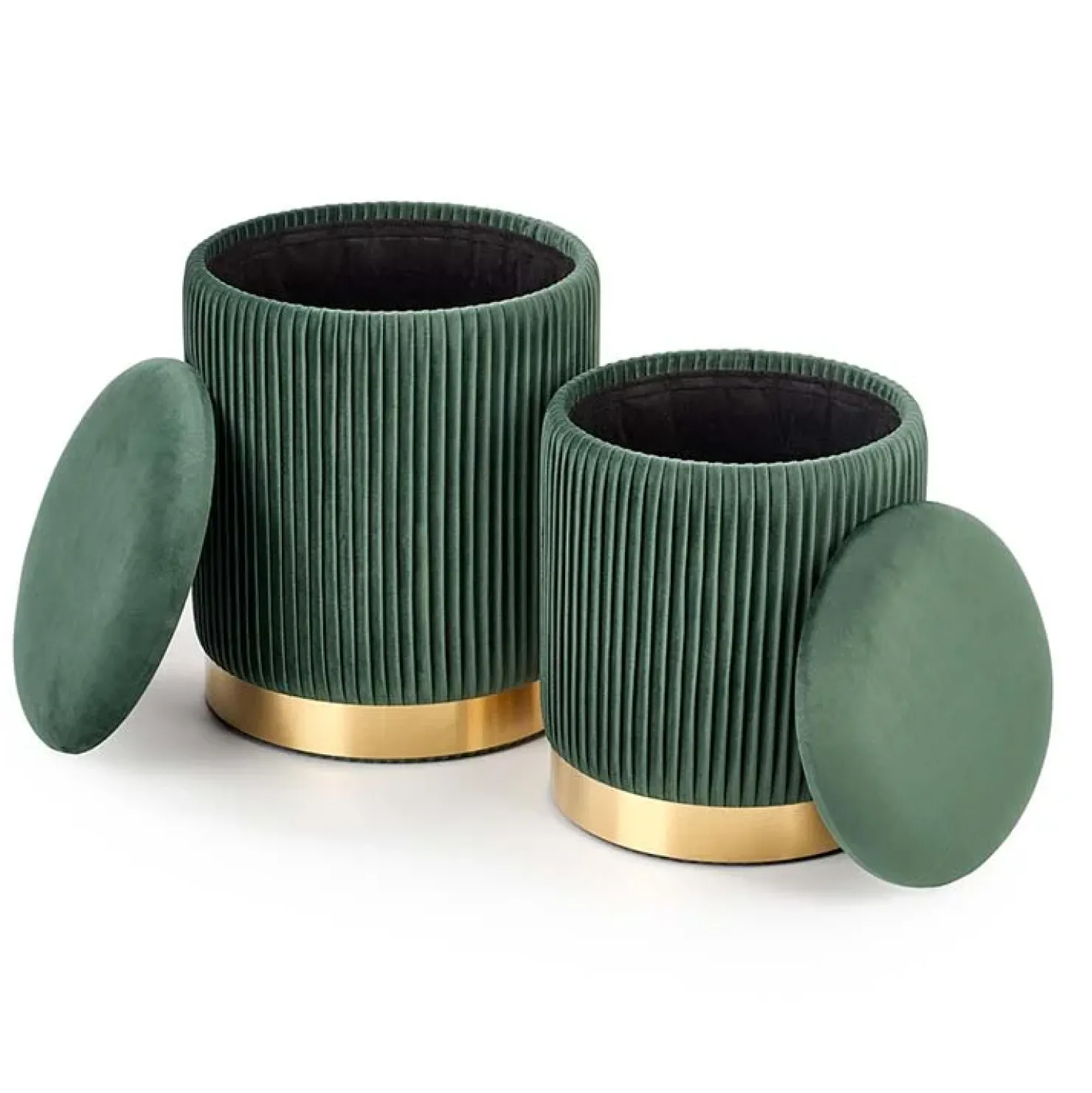 Garnero Arredamenti Set 2 pouf design da salotto contenitore in velluto verde Cubal Verde – Oro Sale