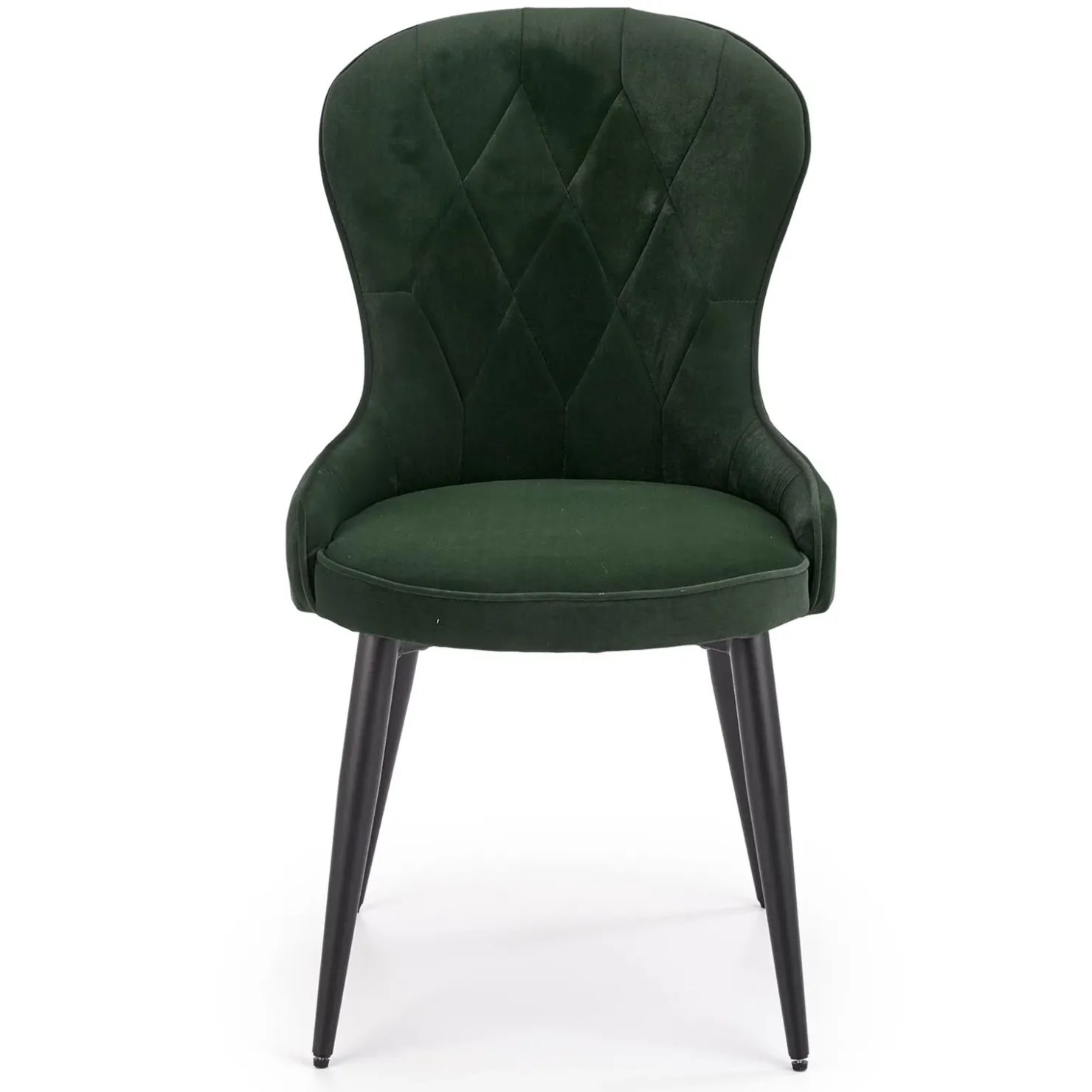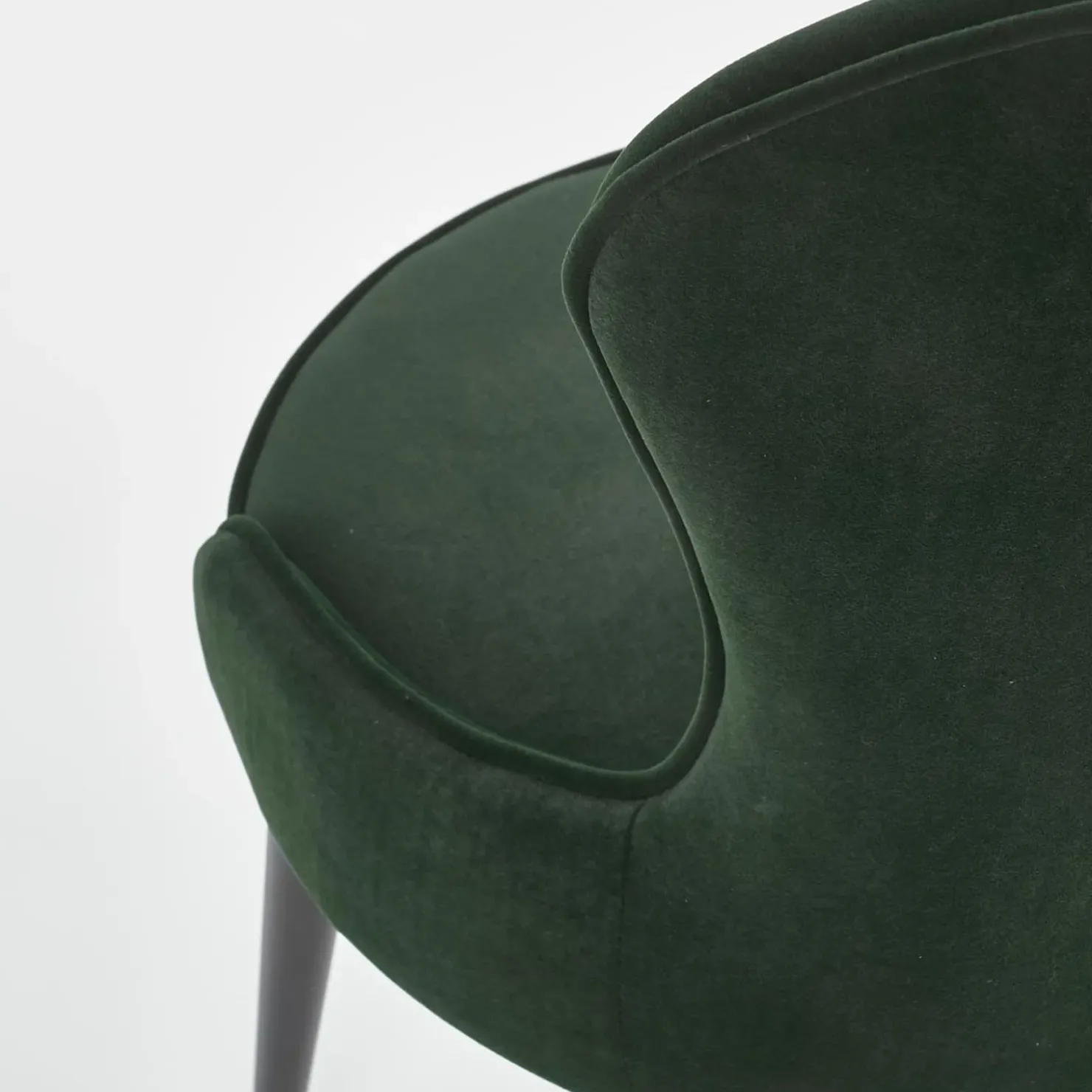 Vera è una sedia imbottita in velluto verde scuro, dal design innovativo e moderno. Vera rappresenta una soluzione perfetta per un arredamento giovane e moderno, eccellente per una sala da pranzo o uno ambiente di lavoro raffinato.