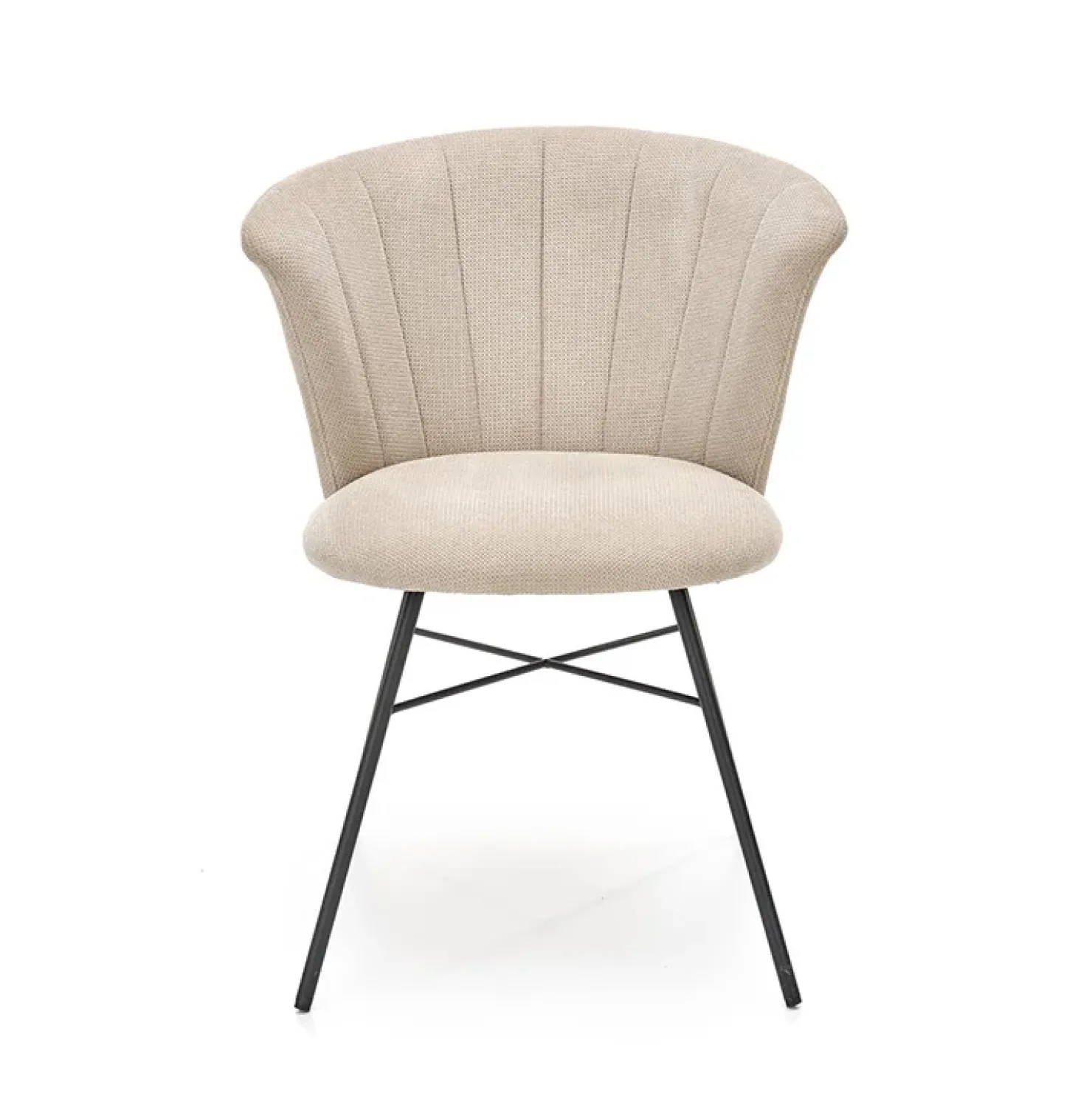 Sedia da pranzo in tessuto beige nero Quark, ideata come una comoda sedia per il tavolo da pranzo, può essere anche utilizzata in soggiorno per offrire un momento di relax a chi la utilizza.