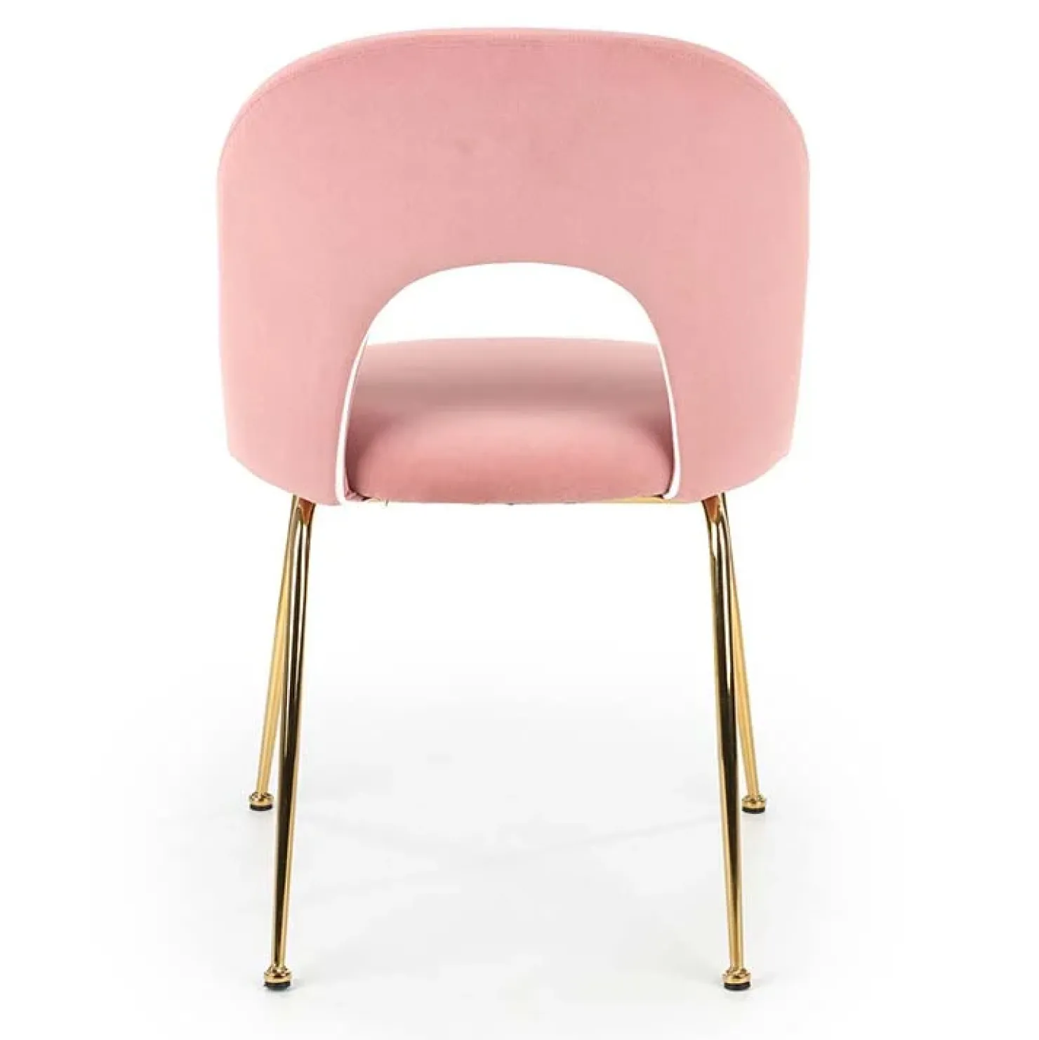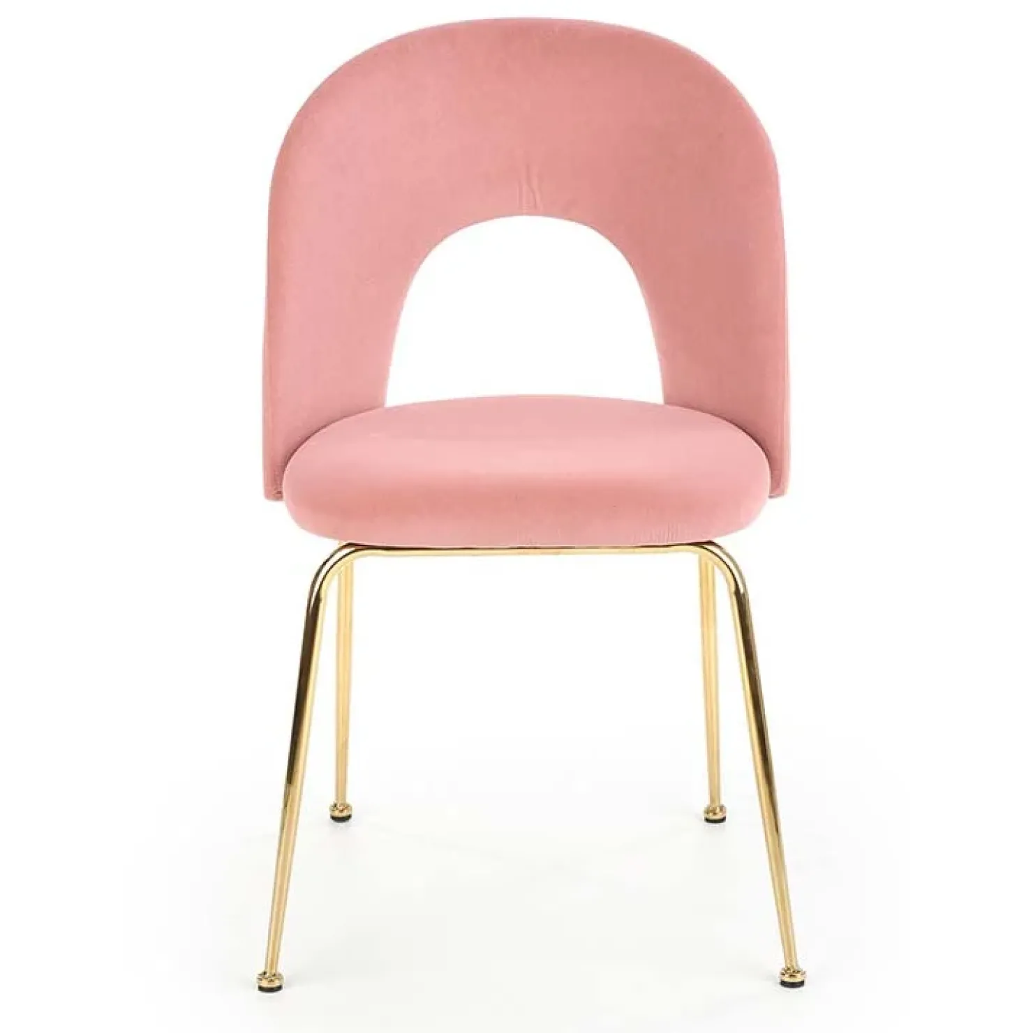 Set 4 sedie moderne in velluto rosa con gambe acciaio oro Jamila