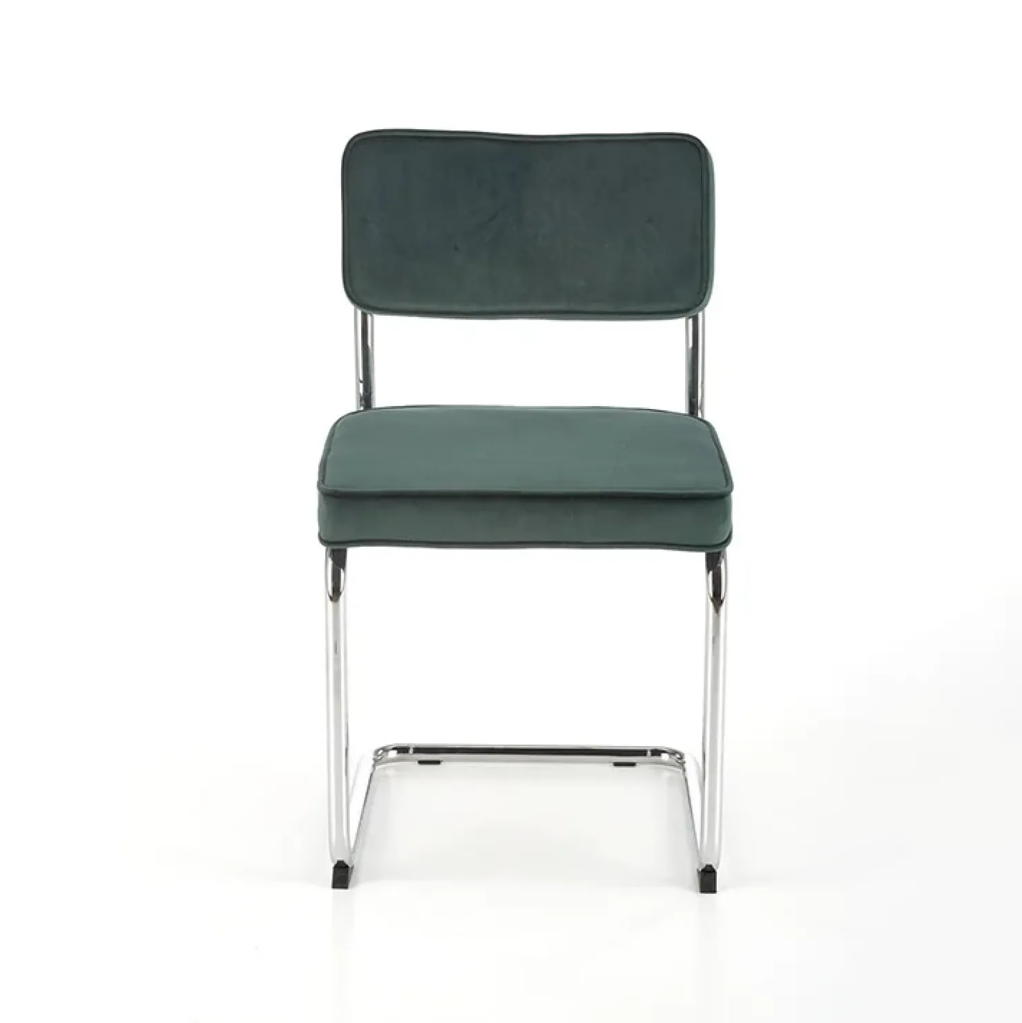 Sedia soggiorno moderna in velluto verde scuro acciaio Vader, la sua linea retrò donerà carattere al tuo soggiorno.