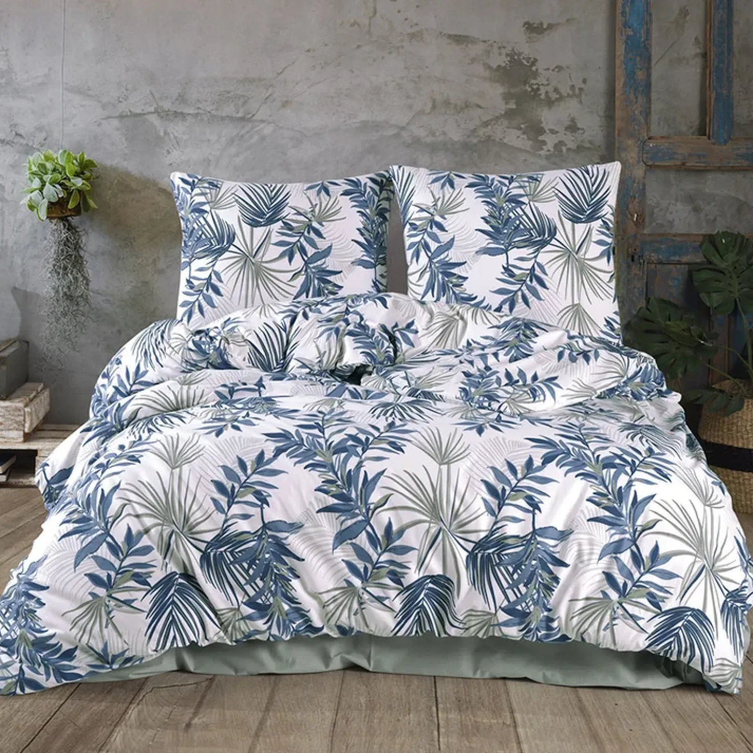 Set copripiumino matrimoniale oversize e federe 240x260cm verde blu Himba
