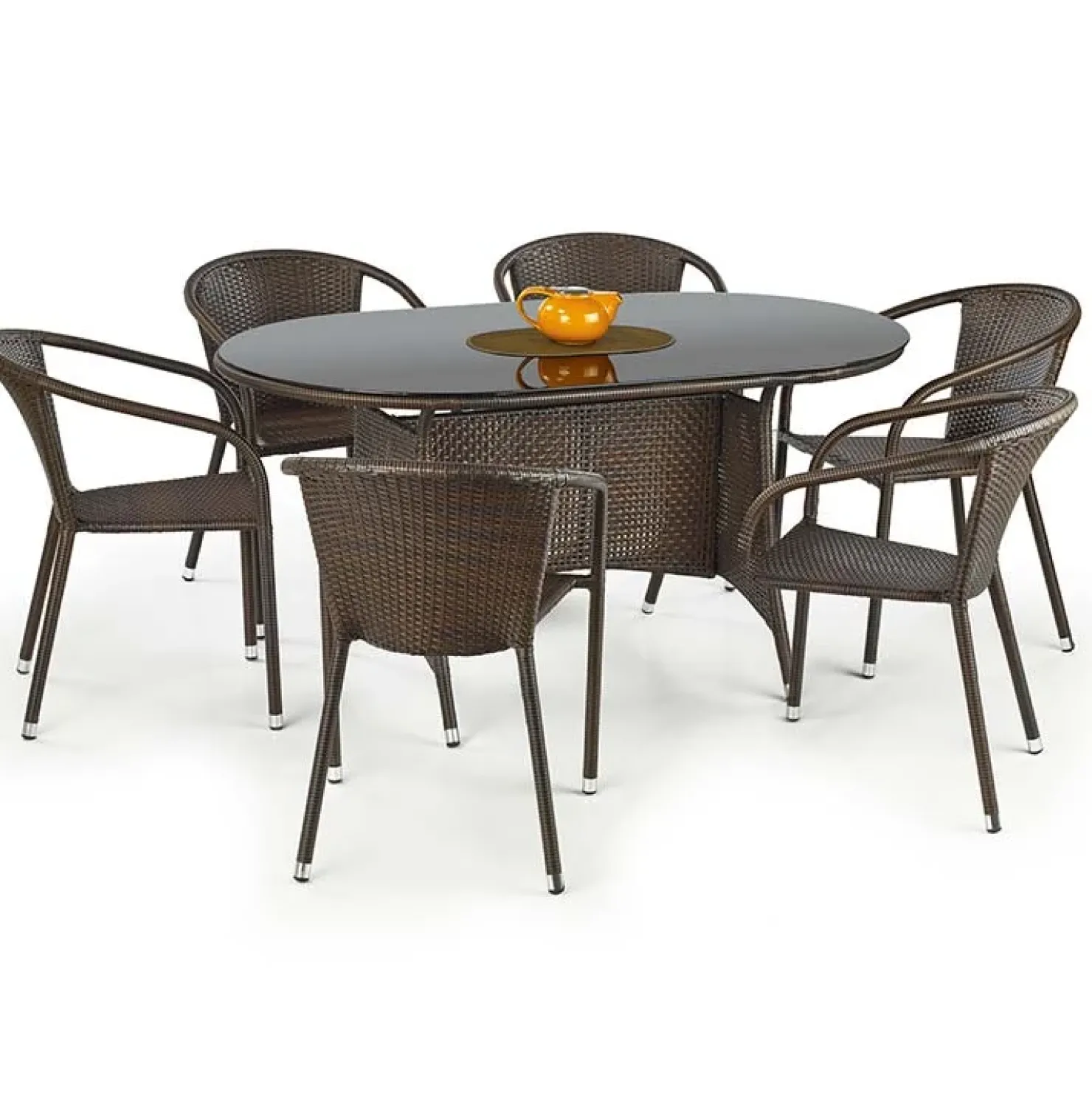 Garnero Arredamenti Set tavolo in vetro 150x90cm + 6 sedie da giardino in rattan marrone acciaio cromato Cubby Outlet