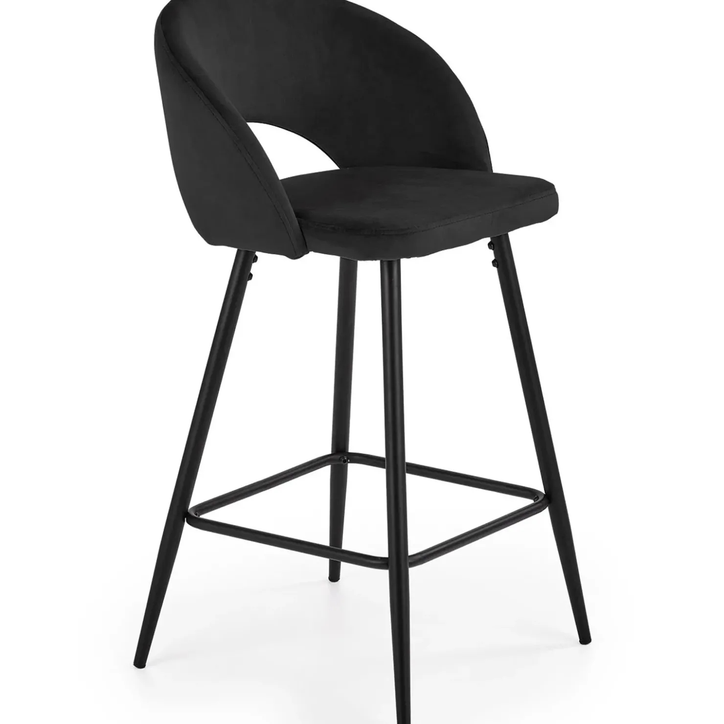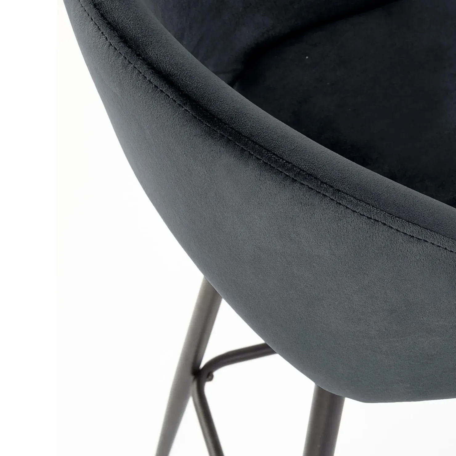 Fober è uno sgabello alto moderno che unisce estetica e funzionalità, perfetto per arredare con stile la zona giorno. Il rivestimento in velluto nero dona calore e raffinatezza, mentre le gambe nere in acciaio aggiungono un contrasto elegante e contemporaneo, garantendo al tempo stesso stabilità e resistenza.