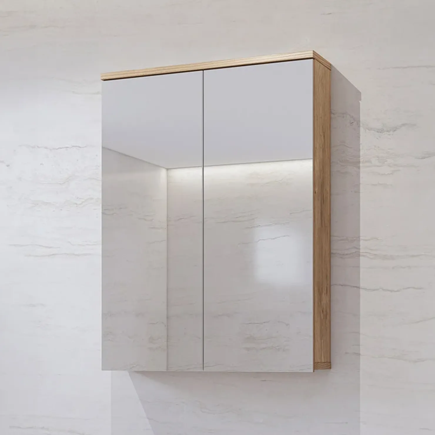 Specchio contenitore bagno 61x84cm sospeso 2 ante rovere Crystal