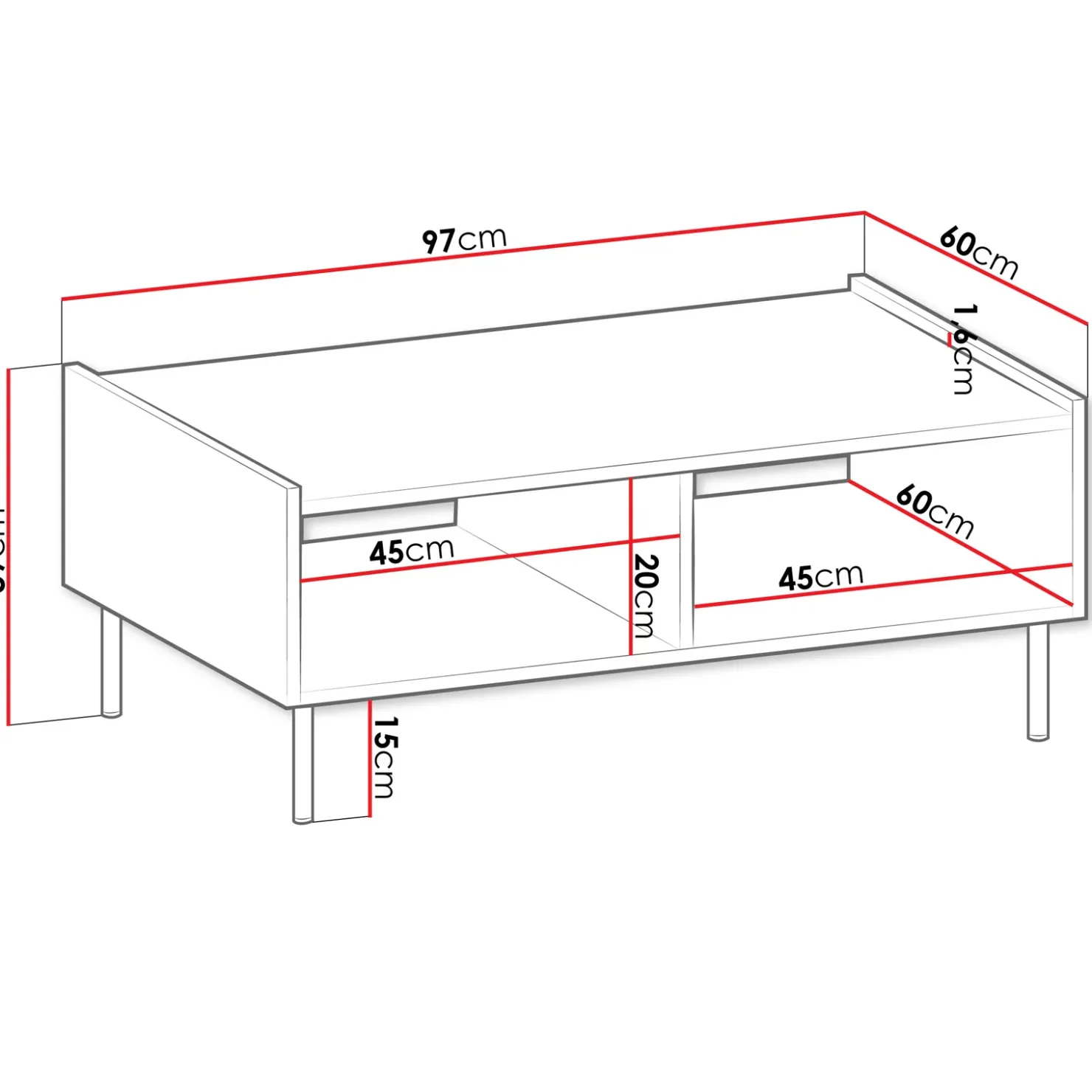 | Dimensioni totali | L.97 x H.39 x P.60 cm |