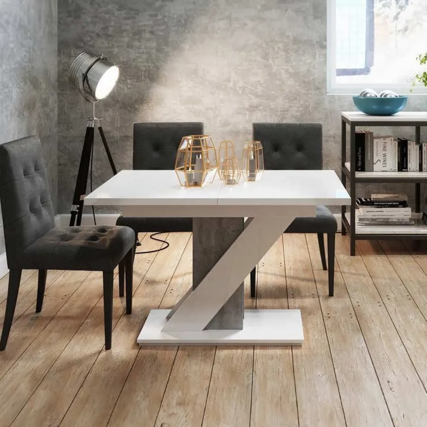 Garnero Arredamenti Tavolo 120/160cm allungabile da pranzo bianco effetto pietra Amilia Bianco Lucido – Grigio Best
