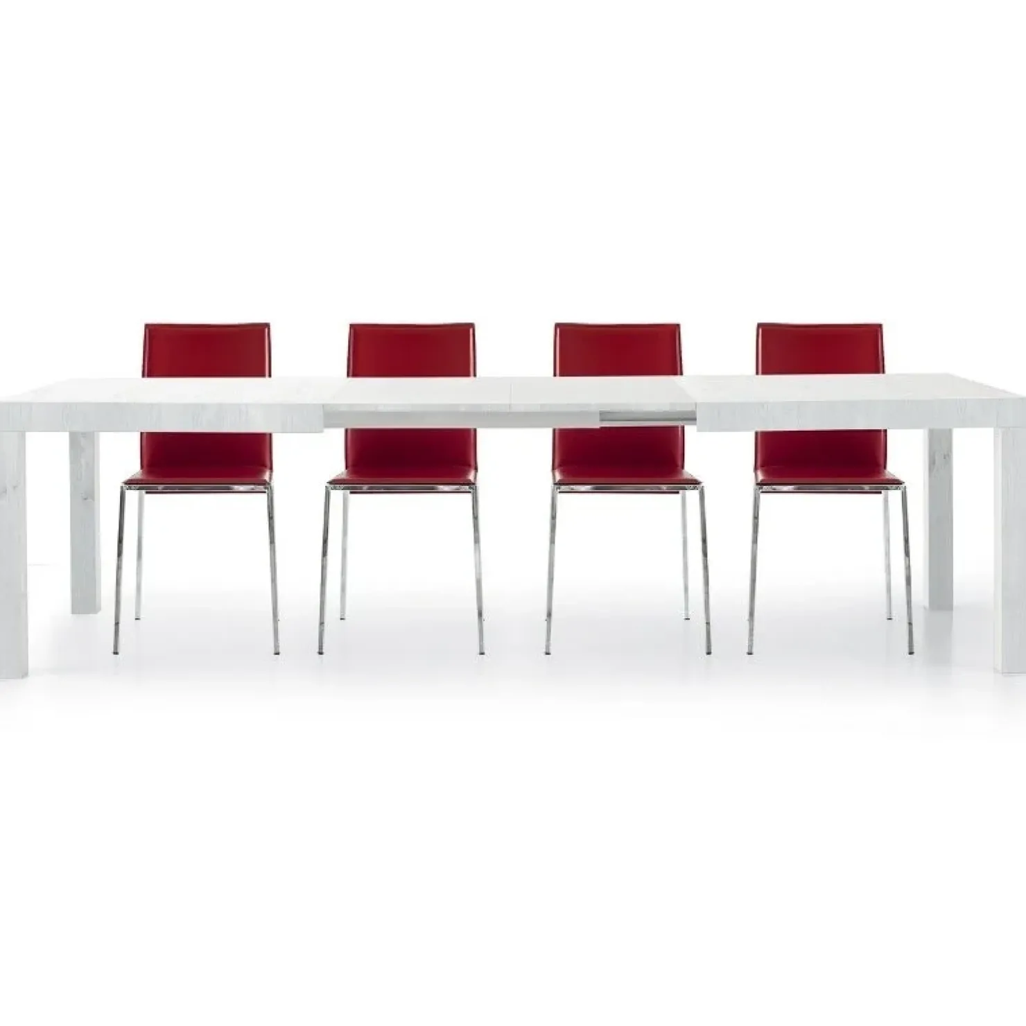 Iago Gihome ® è un tavolo dalle linee essenziali e moderne, realizzato nel colore bianco frassinato è dotato di 2 allunghe da 50 cm ciascuna.