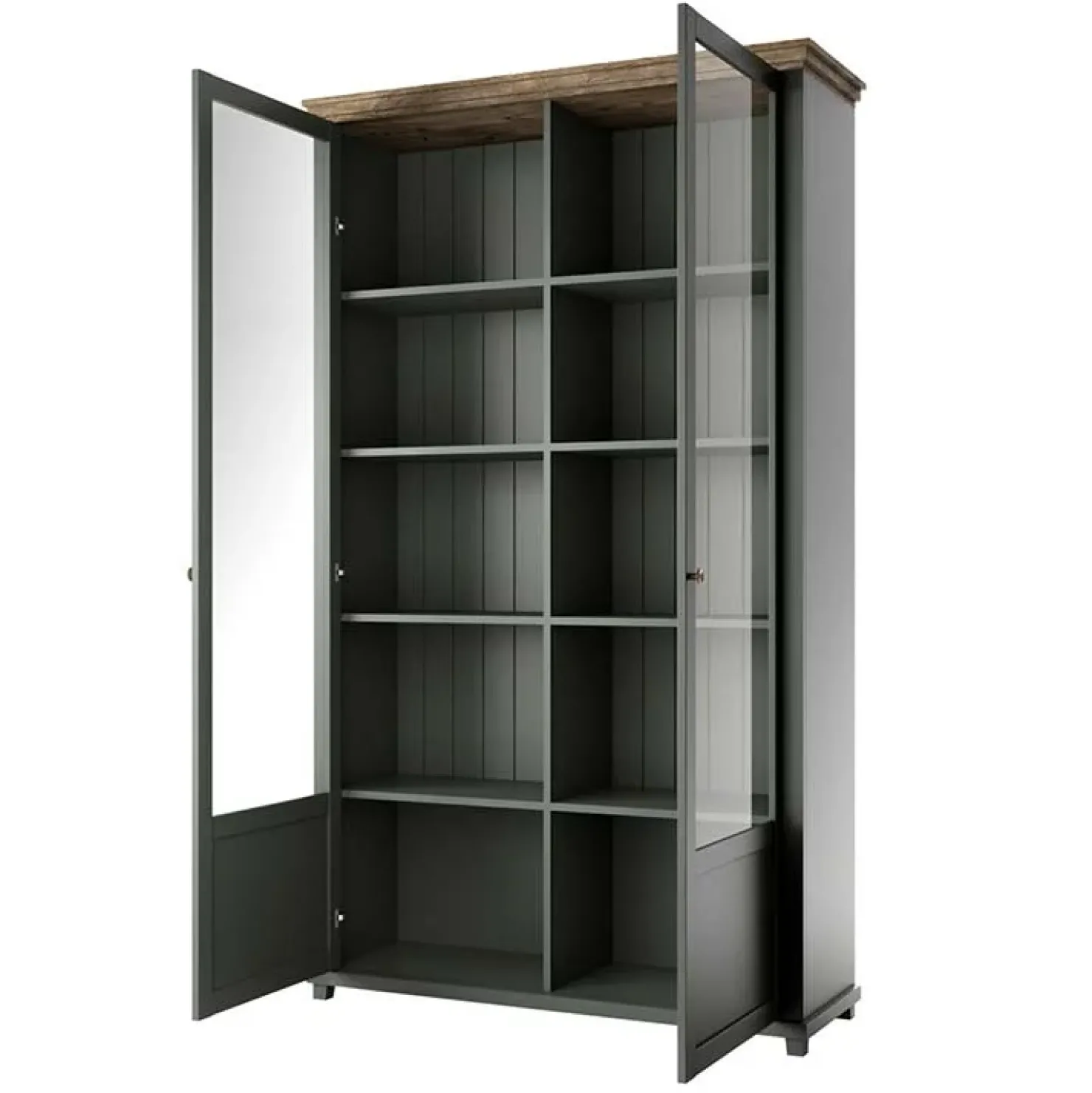 La vetrina soggiorno Texel 2 ante verde quercia è un complemento d’arredo dallo stile romantico, che incarna tutto il sapore, il calore e soprattutto il fascino delle cose che hanno una storia da raccontare. L’elegante verde scuro, combinato con la calda finitura quercia e l’effetto ottone dei pomelli, crea una combinazione unica, dedicata agli amanti dell’eleganza. Munita di 2 ante vetrate, sarà perfetta per esporre i tuoi oggetti preferiti in salotto o in cucina. Internamente è divisa in due vani, ciascuno composto da 4 ripiani, per riordinare ed esporre in modo curato i propri oggetti preferiti.