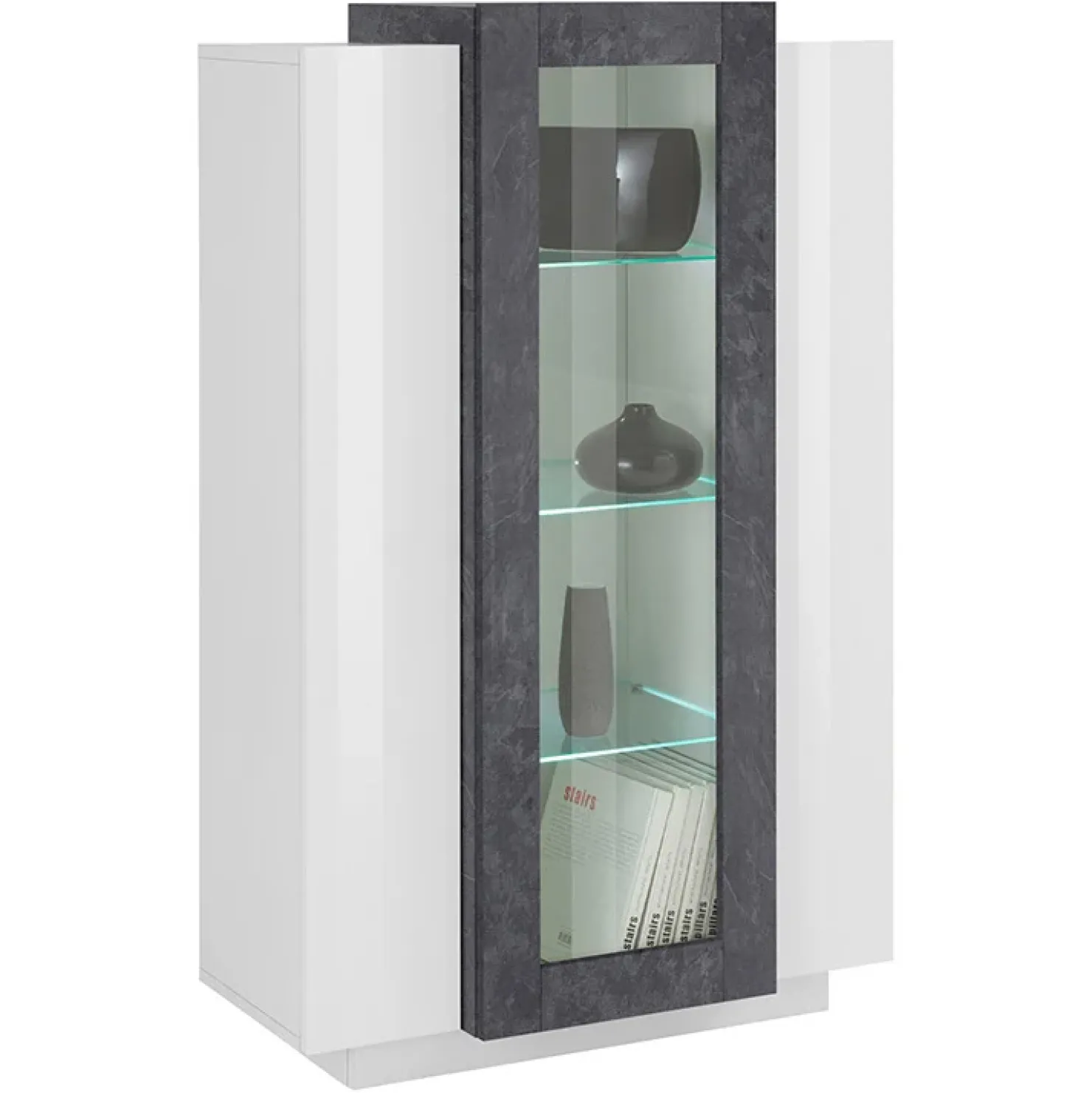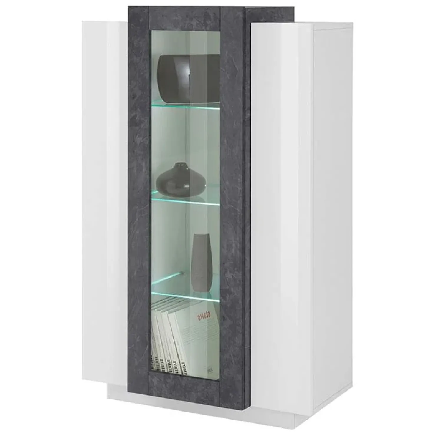 Garnero Arredamenti Vetrinetta 80x121h cm 2 ante bianco lucido nero opaco Milos Gihome® Bianco Lucido – Ossido Online