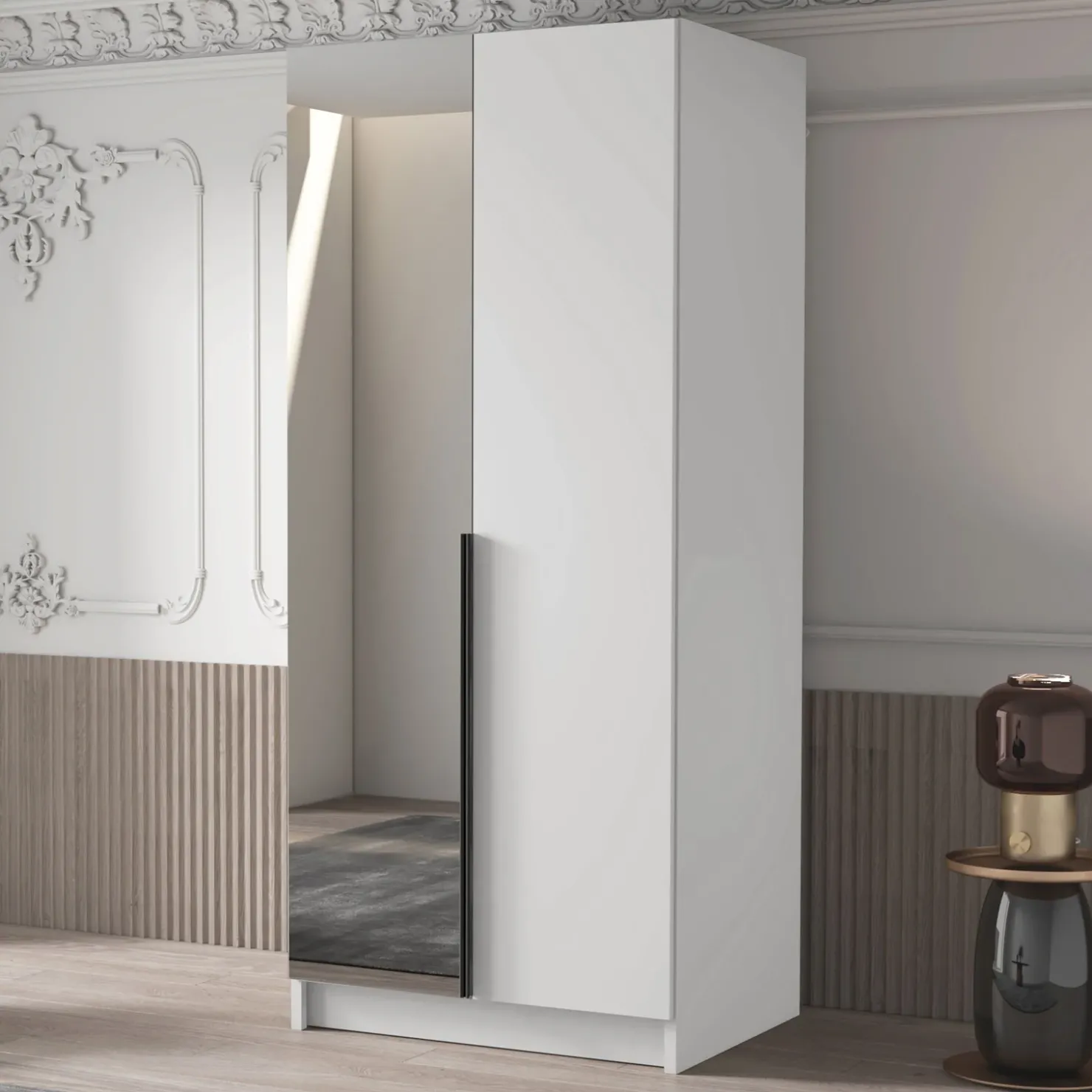 Armadio camera da letto 100x215cm 2 ante 1 specchio bianco nero Glammy 2