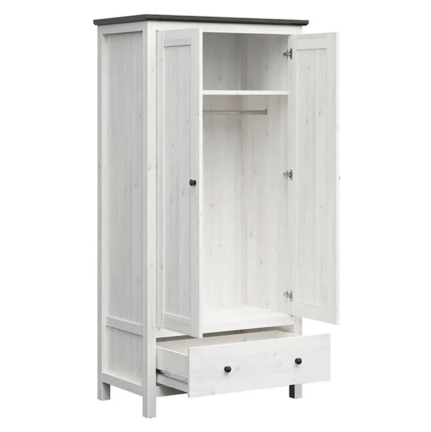 L’armadio della collezione Holga unisce il fascino rustico dell’arte povera con la praticità moderna. Con le sue dimensioni di 101x203cm, offre ampio spazio per riporre abiti e accessori, mentre il design con 2 ante e 1 cassetto aggiunge un tocco di eleganza e funzionalità. Realizzato con pino bianco frassinato e finiture grafite, si integra perfettamente in ambienti dallo stile tradizionale o contemporaneo.