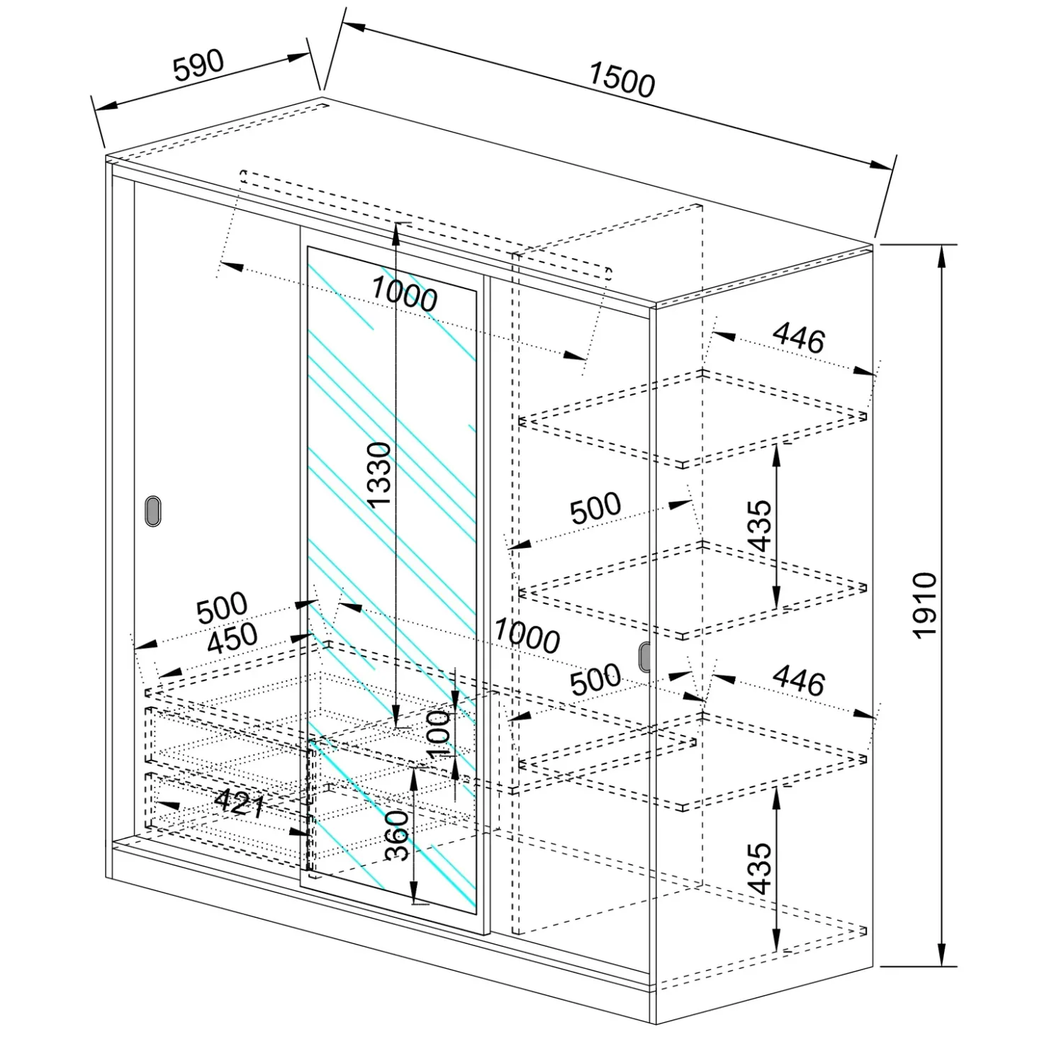 - Dimensioni totali: L.150 x P.59 x H.191cm