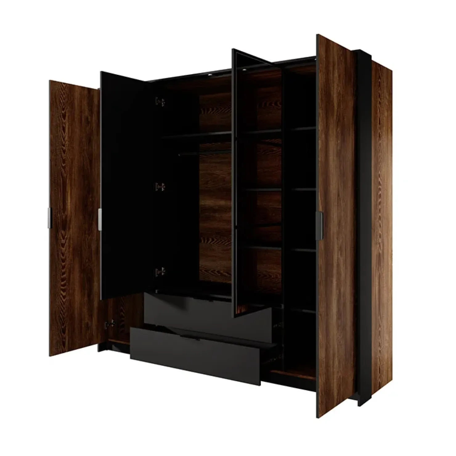 Armadio 223x210cm 4 ante con specchio quercia nero Smooty