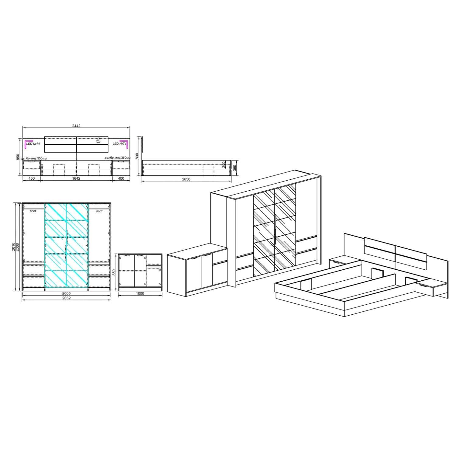 - Dimensioni letto contenitore: L.244,5 x P.206 x H.89,5 cm