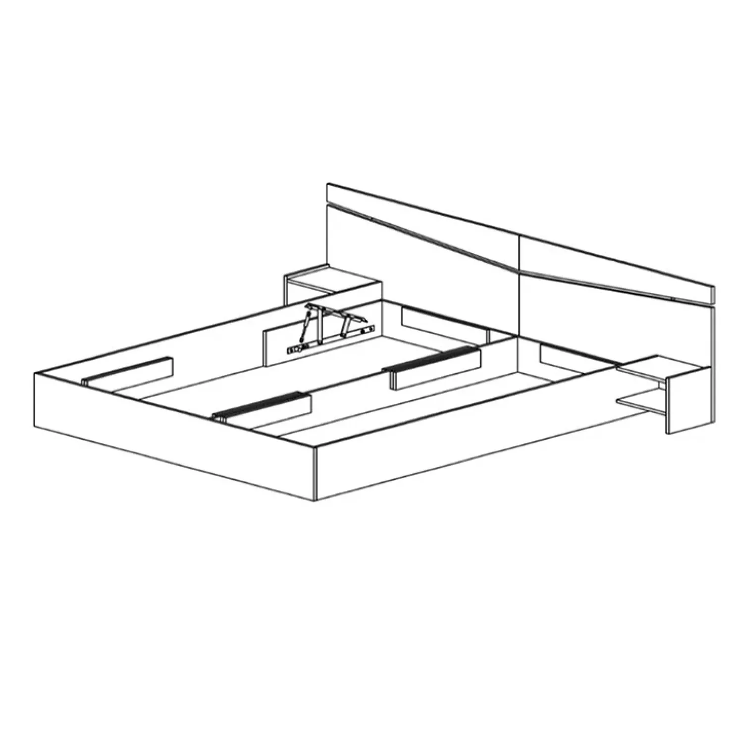 Ti offre un letto con funzionalità contenitore con la particolarità di comodini integrati con vani a giorno per la comodità di avere tutto facilmente a portata di mano.