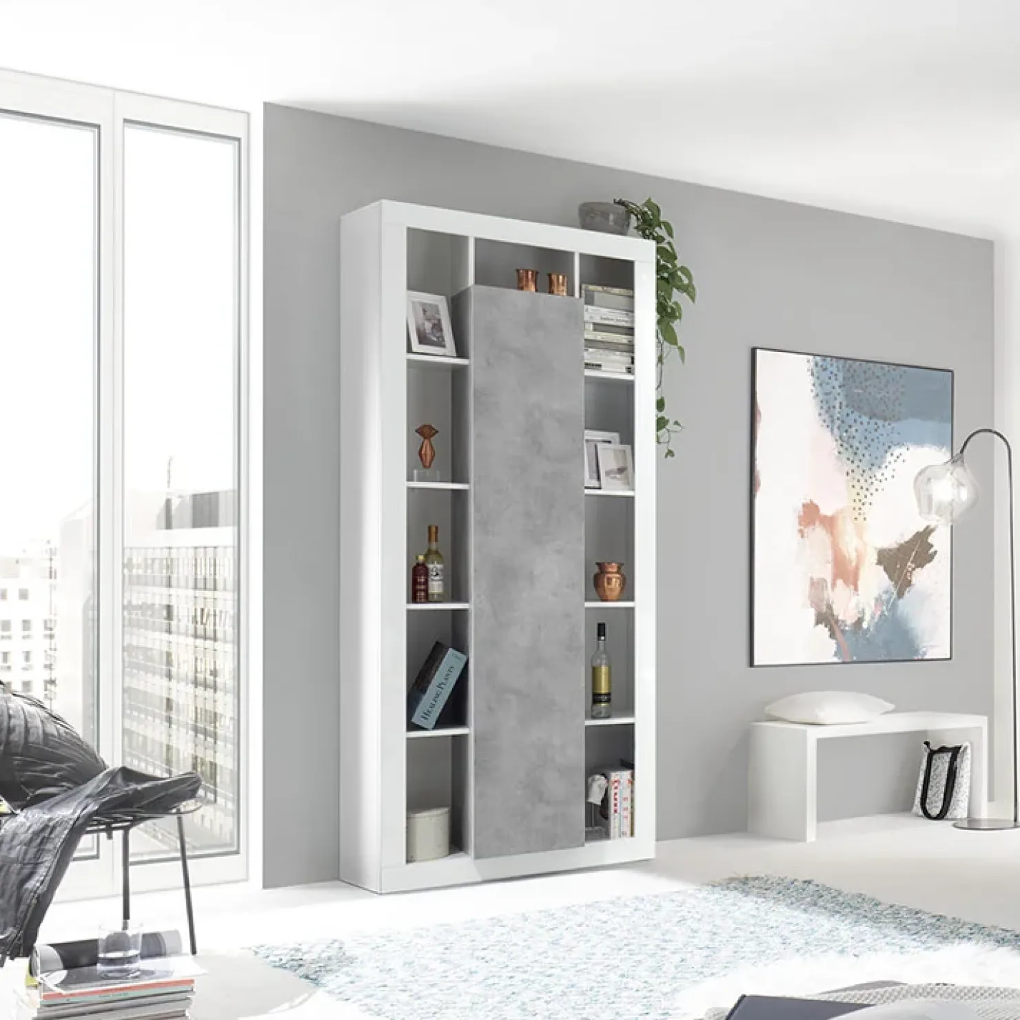 Garnero Arredamenti Colonna libreria 95x217h cm 1 anta bianco cemento Trilogy Bianco Opaco – Cemento Sale