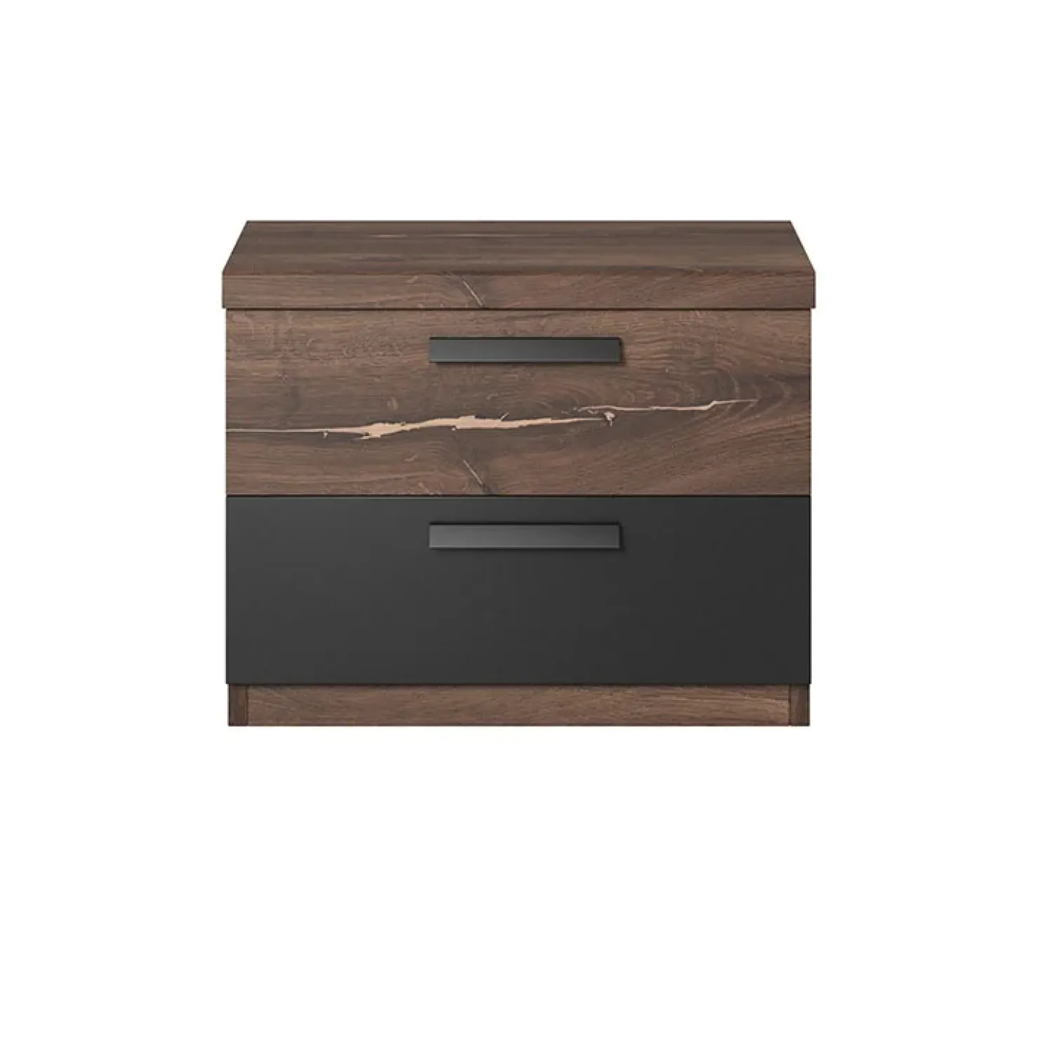 Garnero Arredamenti Comodino 46x37h cm 2 cassetti moderno quercia scuro nero Vulcano Noce Best