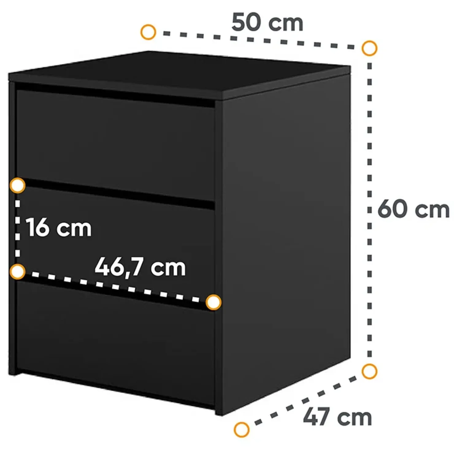 Le dimensioni di 50×60 cm lo rendono un elemento versatile e compatto, ideale per spazi piccoli o come complemento d’arredo accanto al letto. I tre cassetti offrono ampio spazio per riporre abbigliamento, accessori o oggetti personali, mantenendo l’ambiente ben organizzato e privo di ingombri. Questo comodino non solo migliora l’efficienza dello spazio, ma aggiunge anche un tocco di eleganza e semplicità all’ambiente, completando il tuo arredamento con gusto e funzionalità.