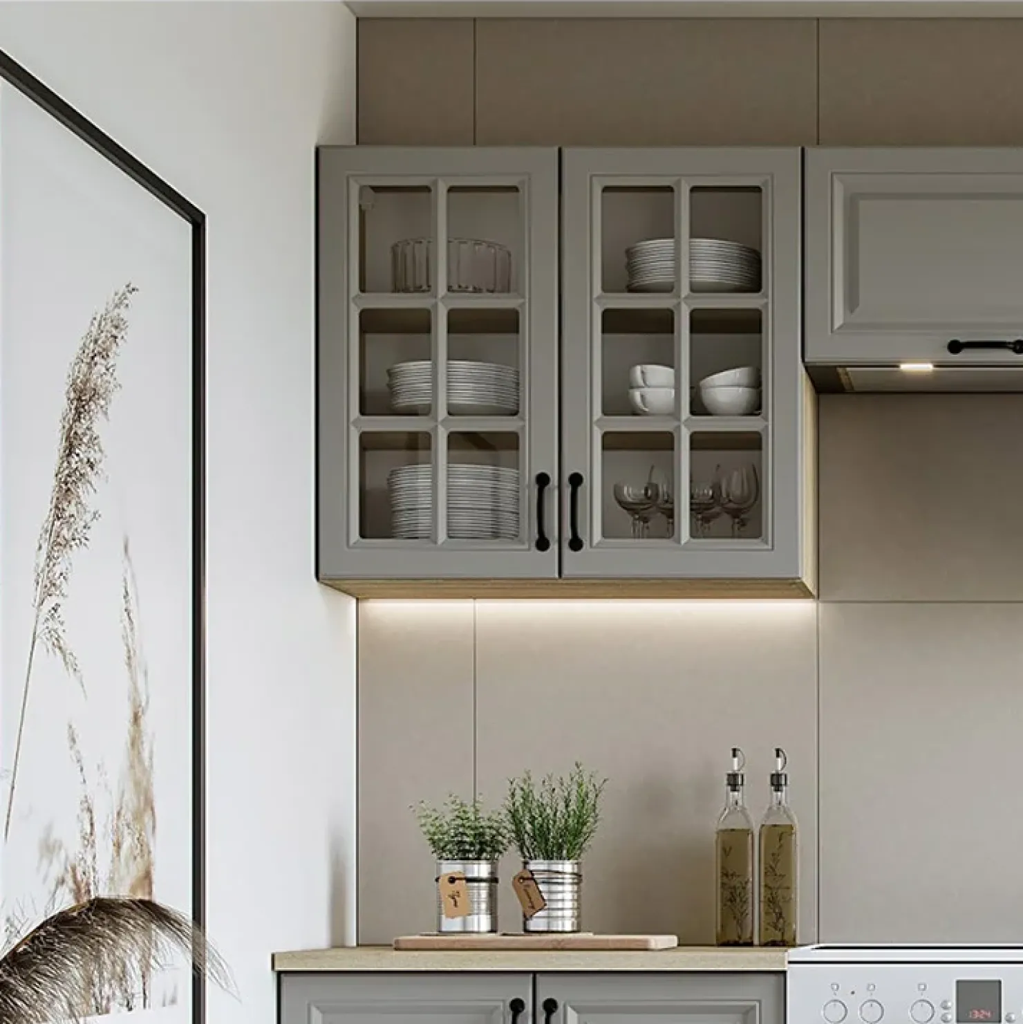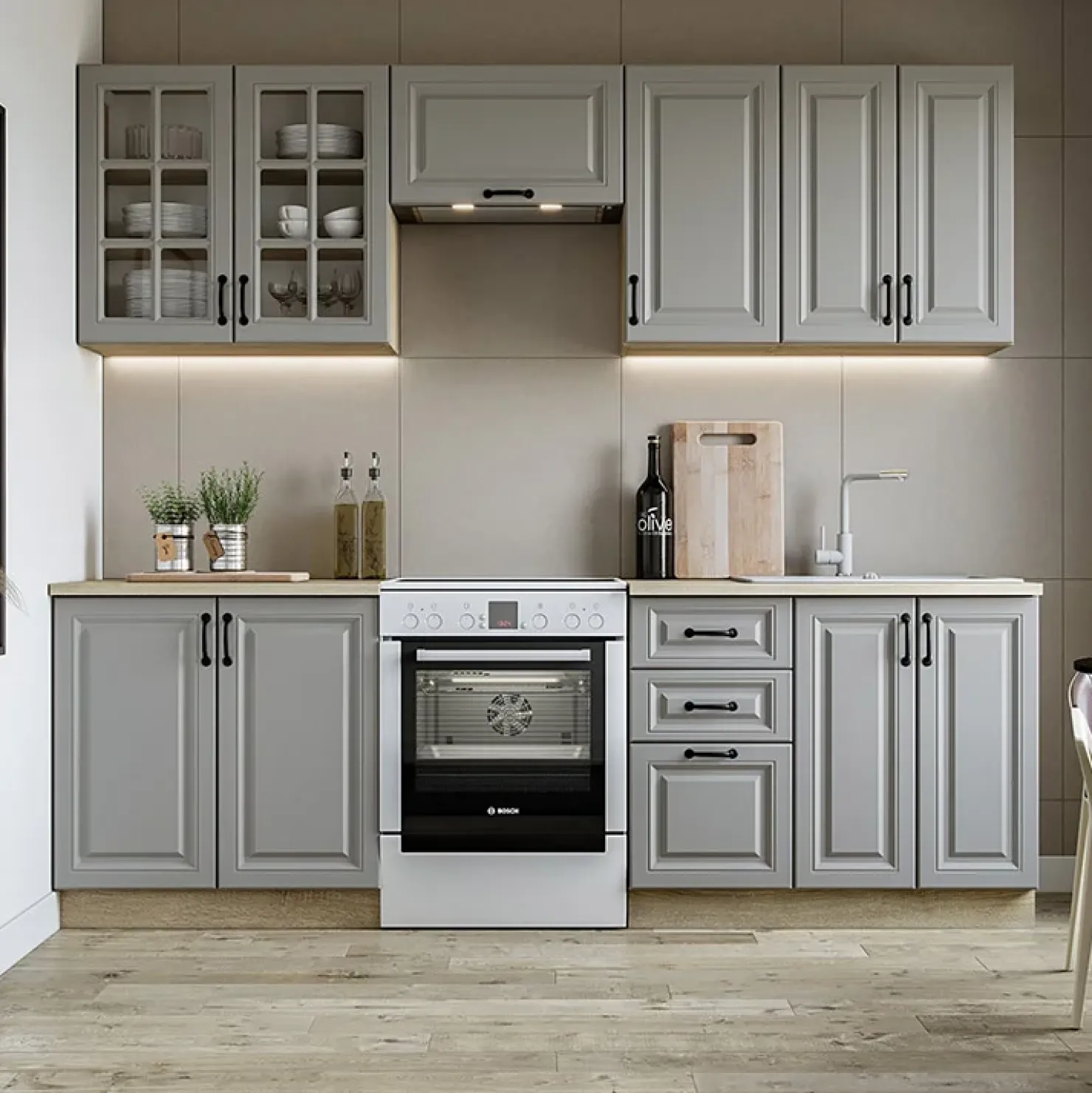 Cucina completa moderna componibile 240cm grigio rovere sonoma Oxford, la soluzione ideale per arredare la tua cucina con uno stile shabby ricercato.