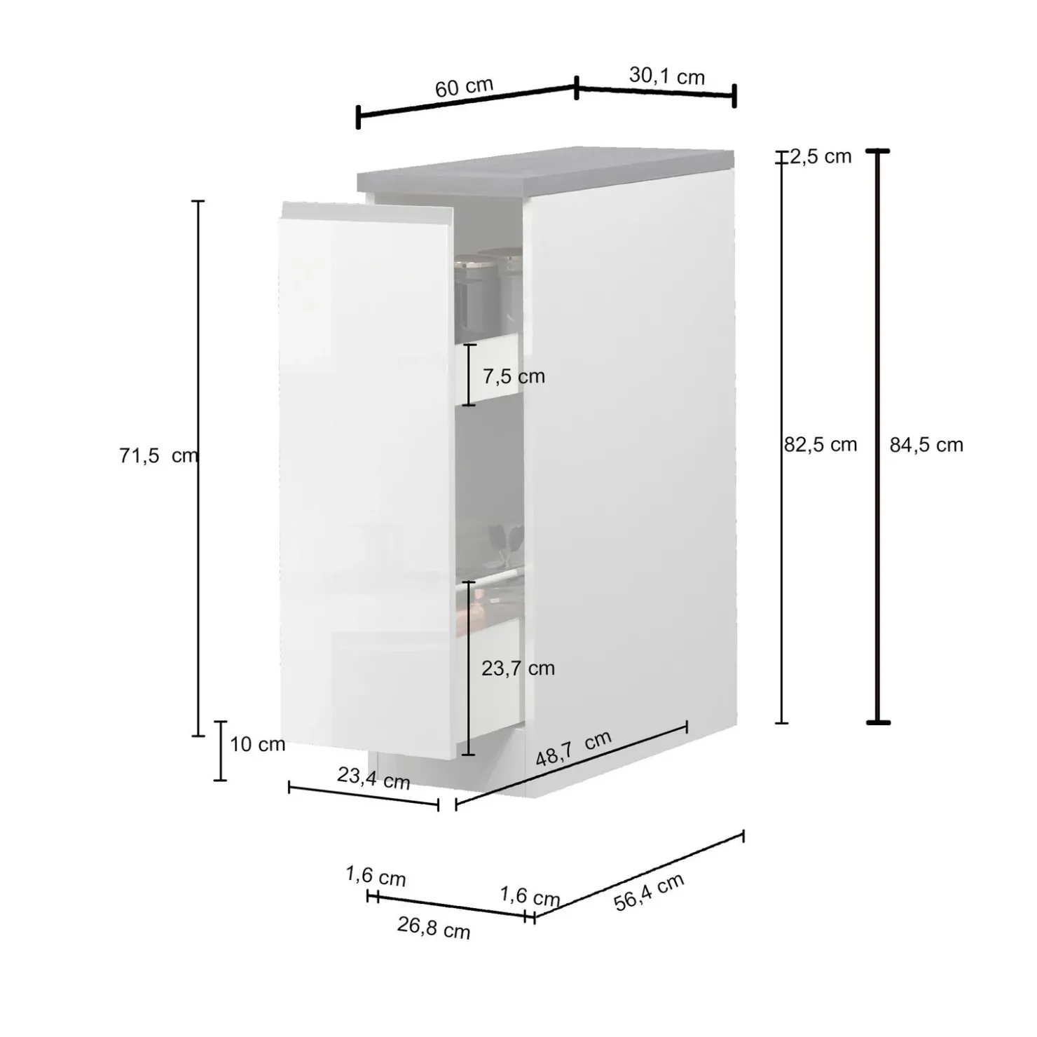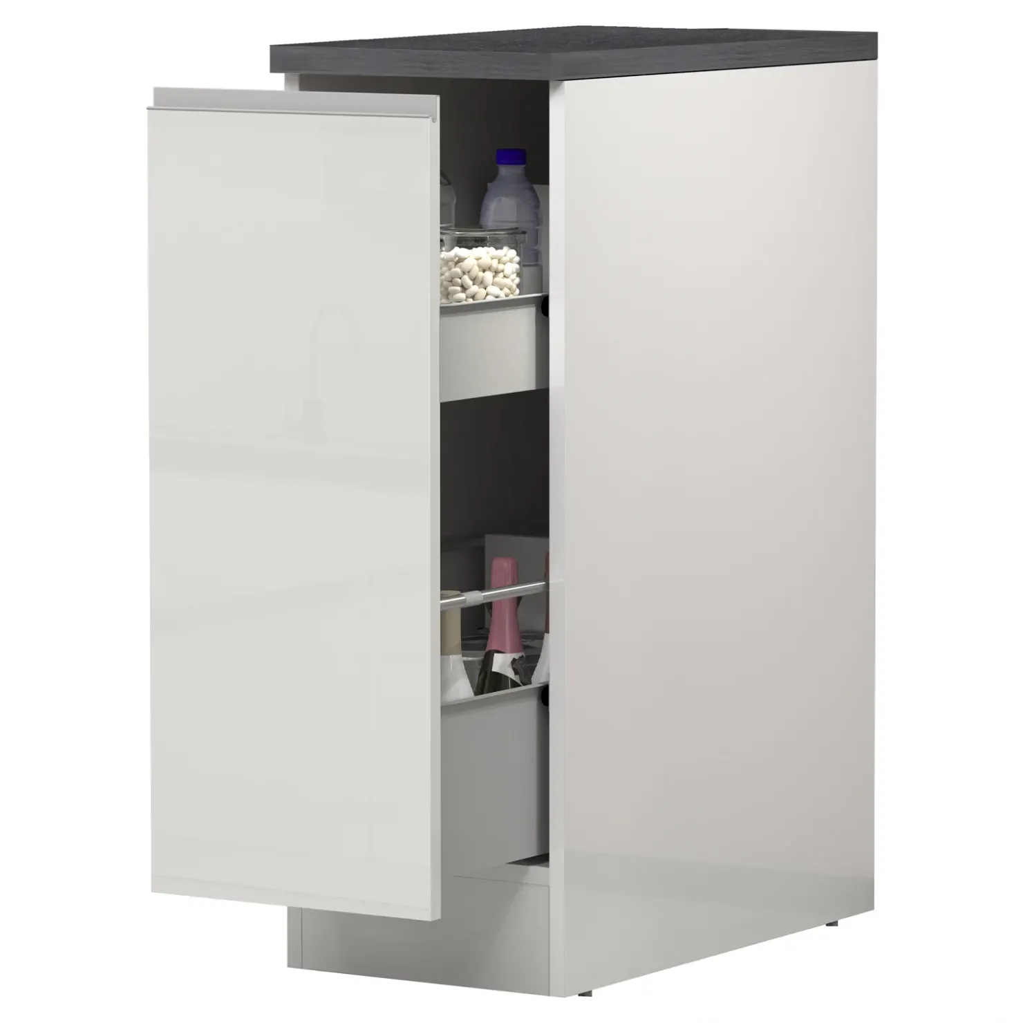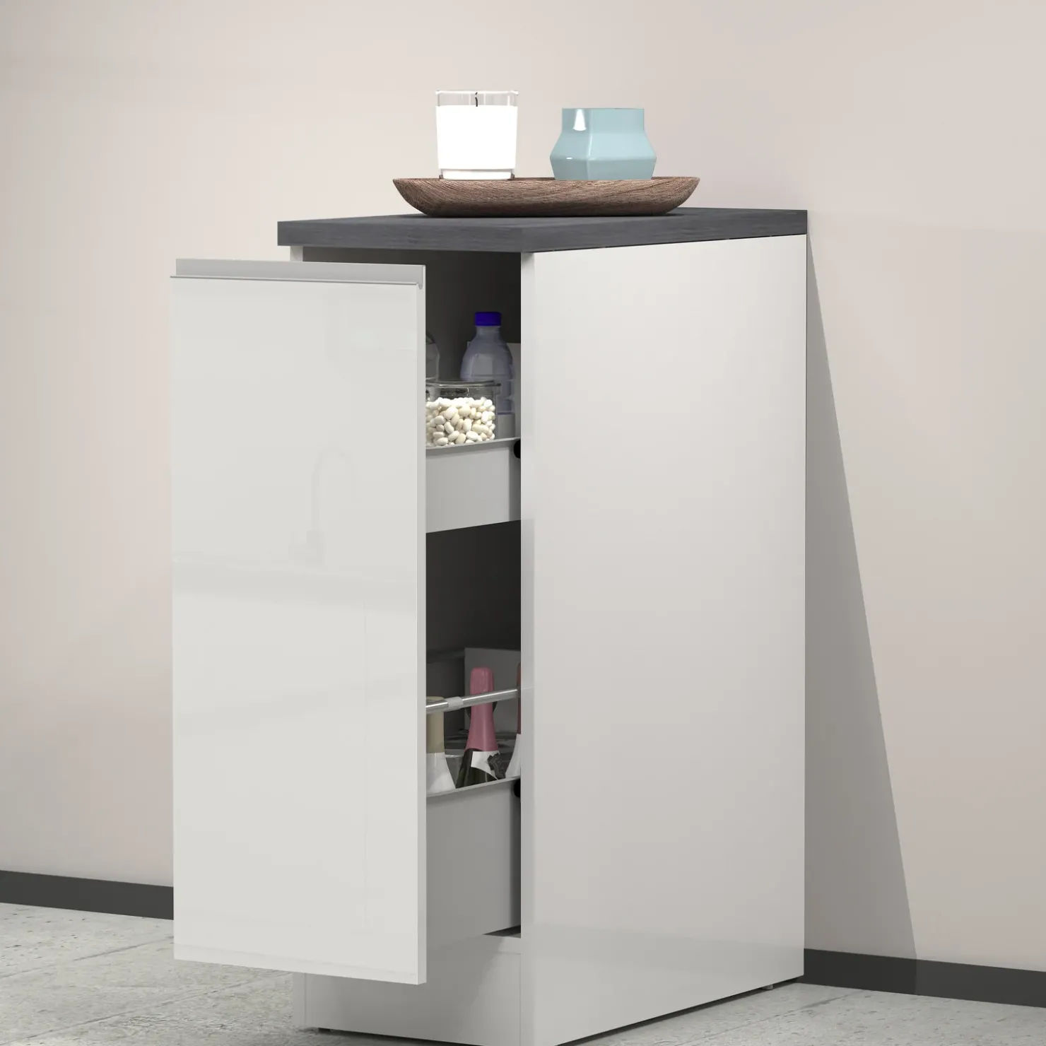 Dispensa cucina bassa 30x85cm scorrevole bianco lucido grigio pietra Gourmet