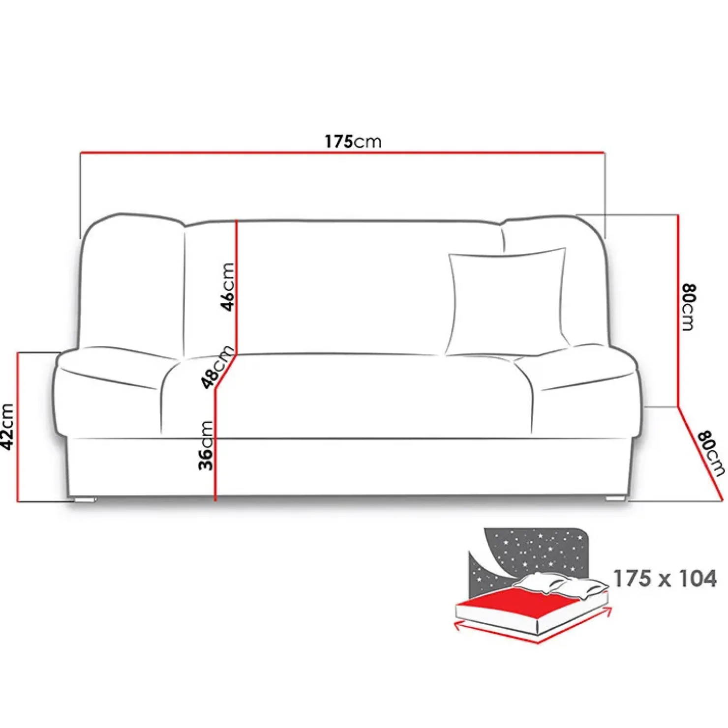 - dimensioni letto: 175 x 104 cm