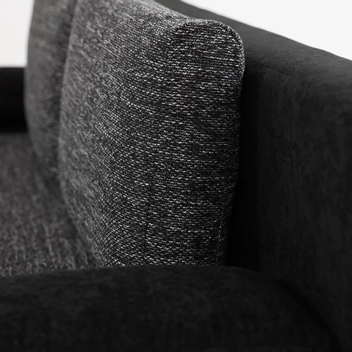 Divano letto 2 posti imbottito in tessuto 200cm grigio scuro Barney, con una forma un po’ insolita ed arrotondata è quello che ti serve per smorzare la rigidità del tuo arredamento.