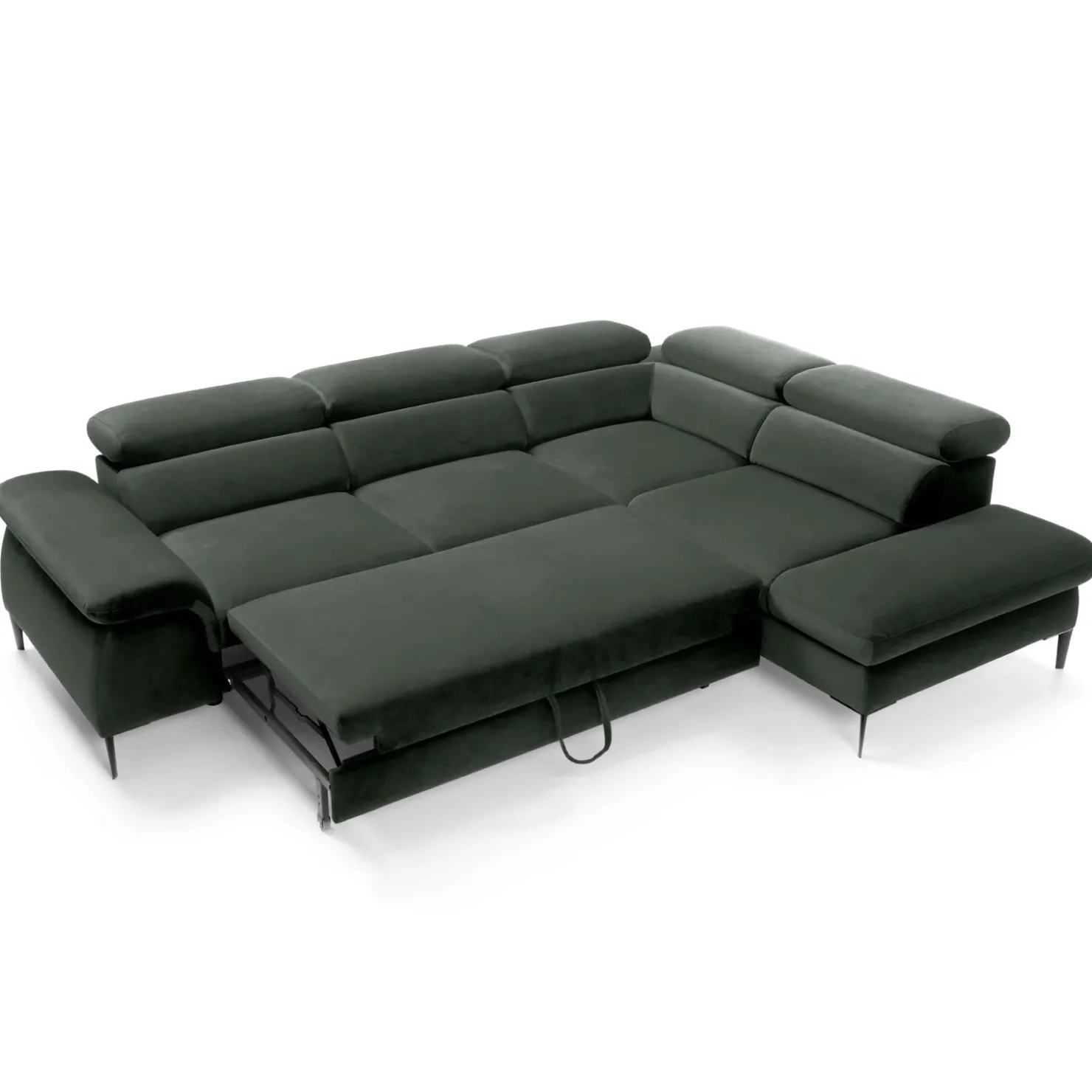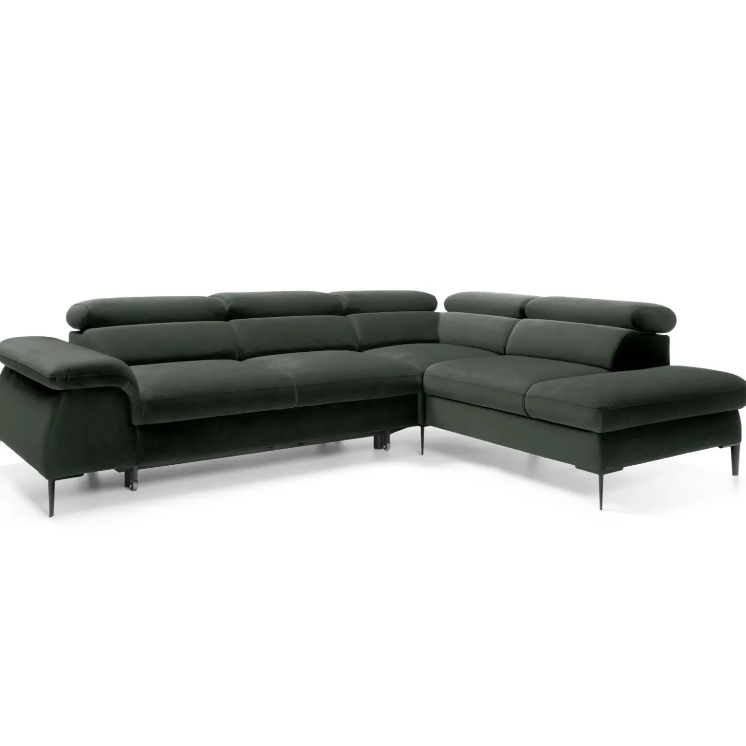 Garnero Arredamenti Divano letto regolabile angolare destra 5 posti 280x214cm tessuto verde Snuggity Tessuto Vellutato Vogue Verde Discount
