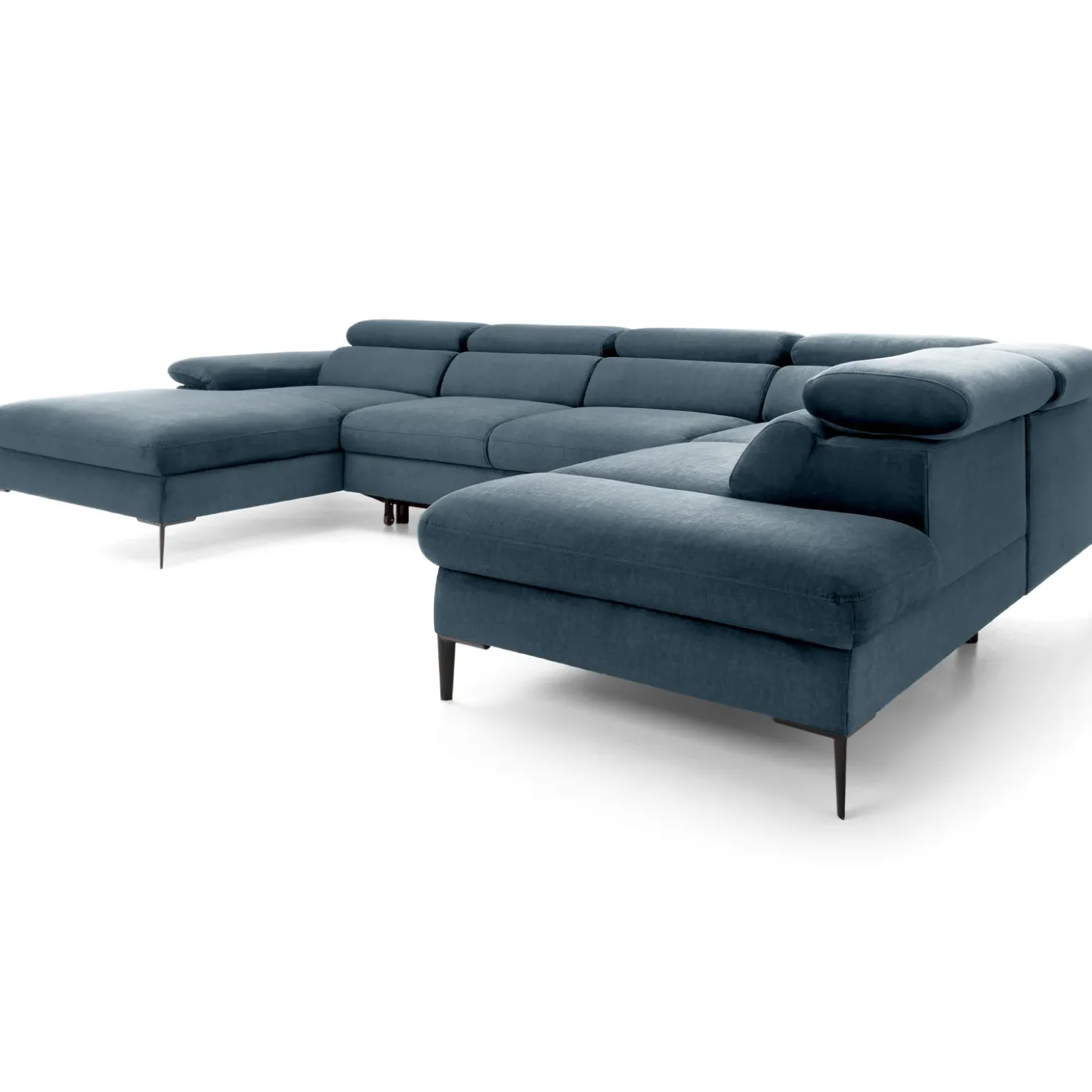 Garnero Arredamenti Divano letto regolabile angolare destro 5 posti 353x214cm tessuto azzurro Calmora Tessuto Vellutato Vogue Azzurro Clearance