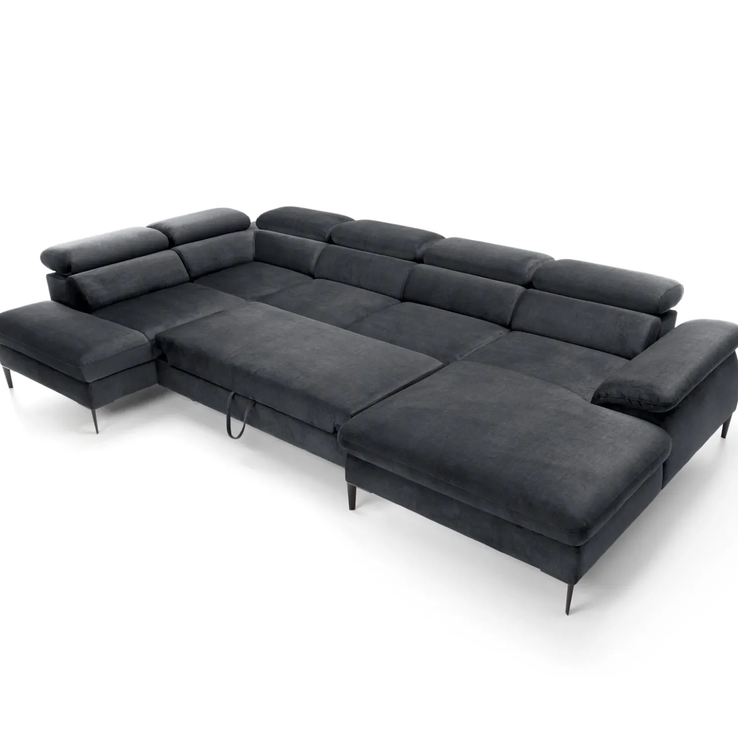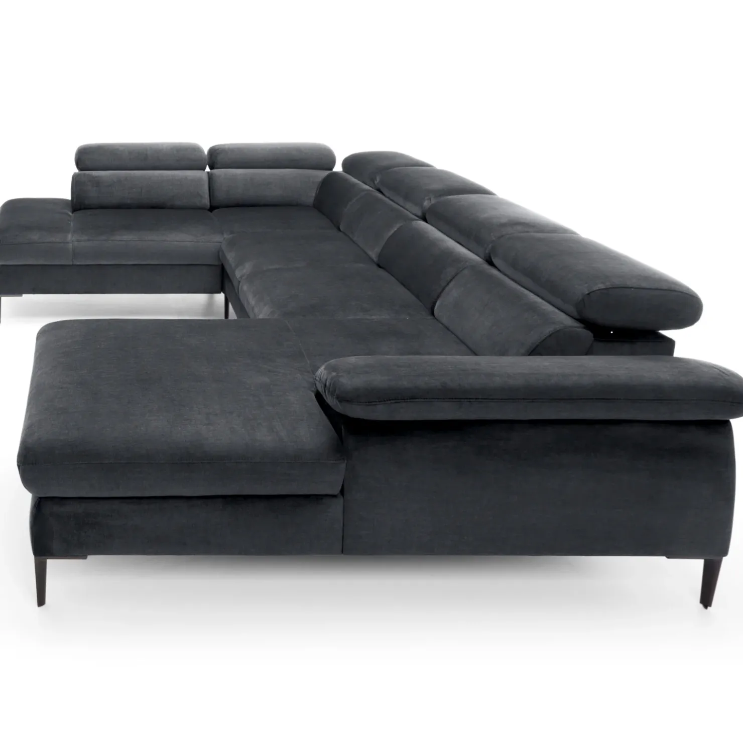 Garnero Arredamenti Divano letto regolabile angolare sinistro 5 posti 353x214cm tessuto grigio scuro Calmora Tessuto Vellutato Vogue Grigio Scuro Outlet