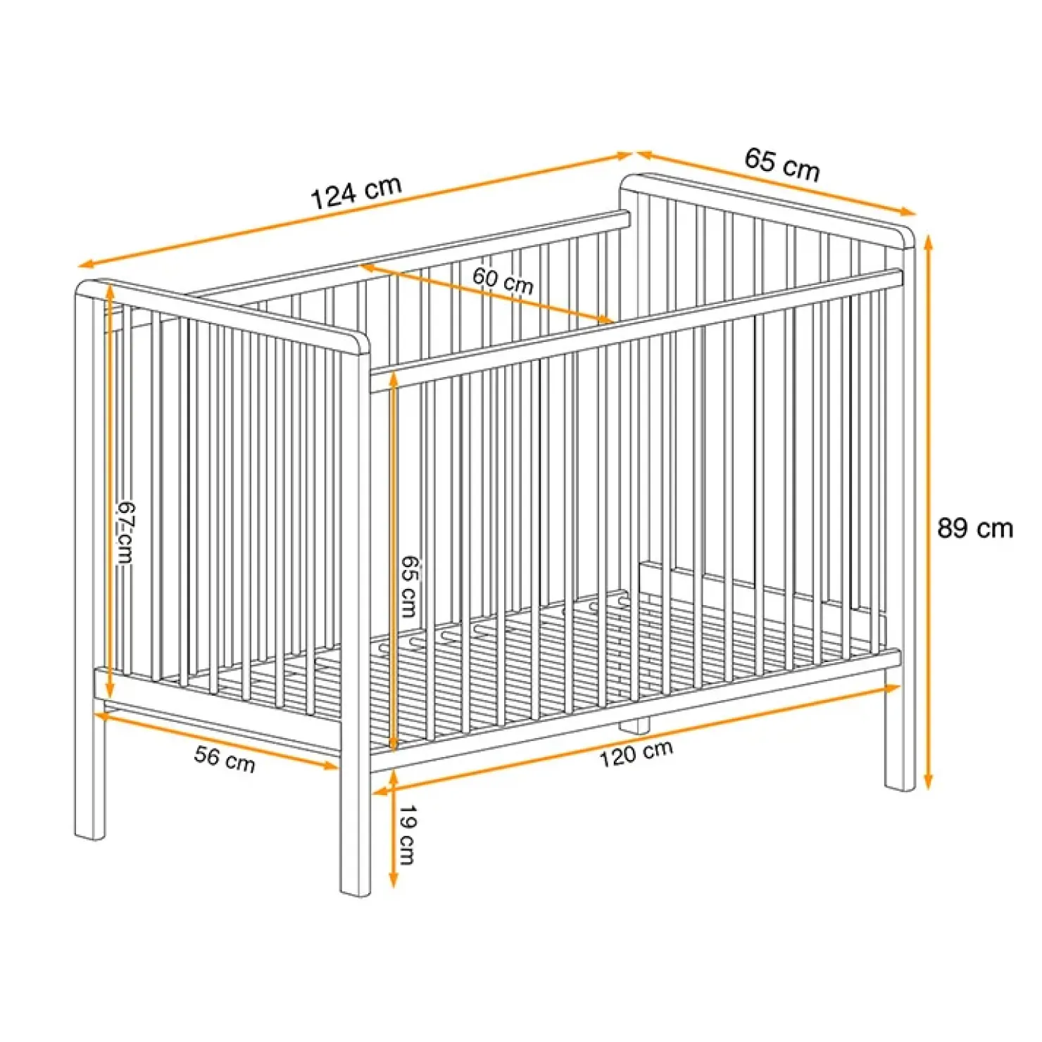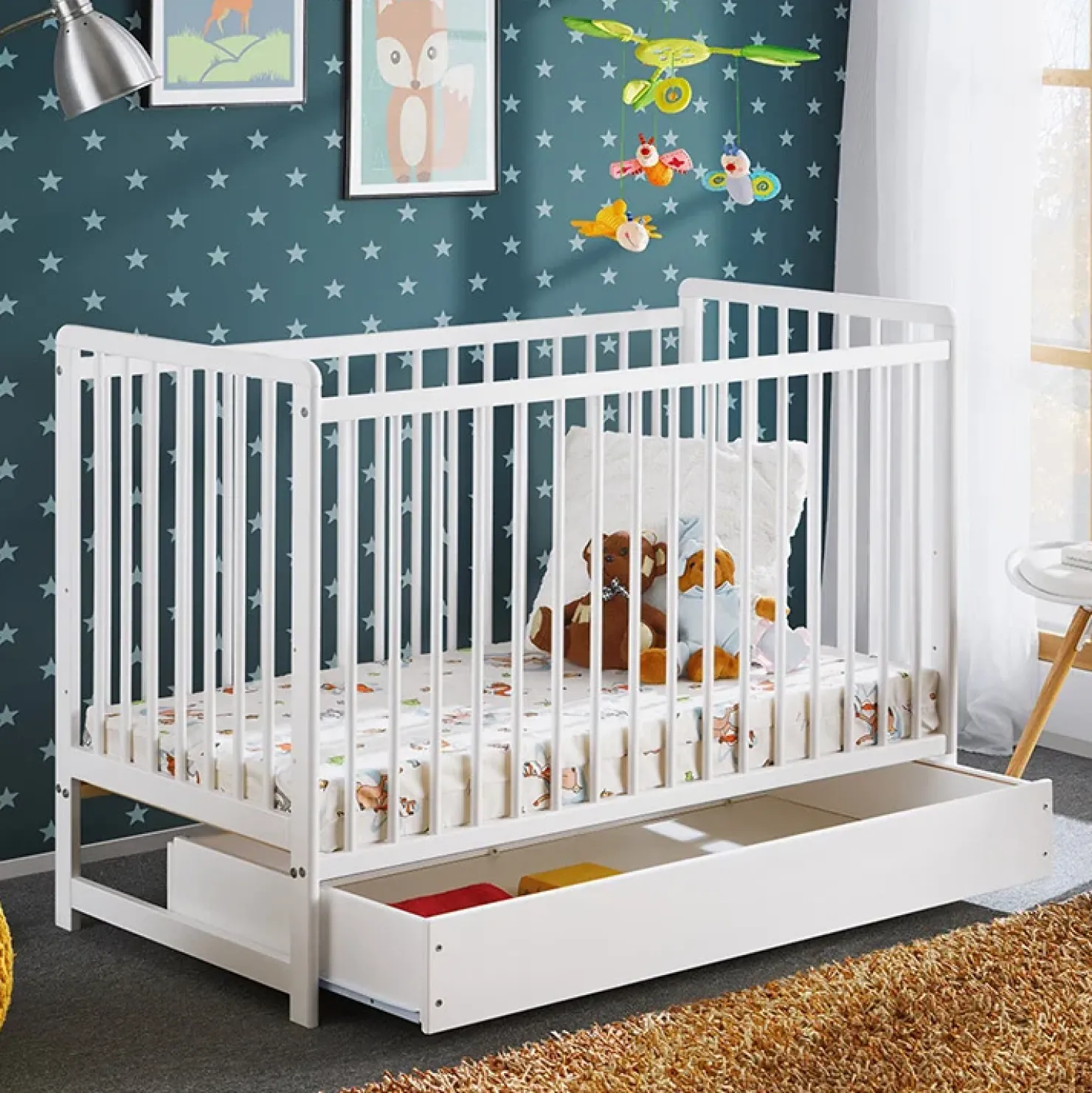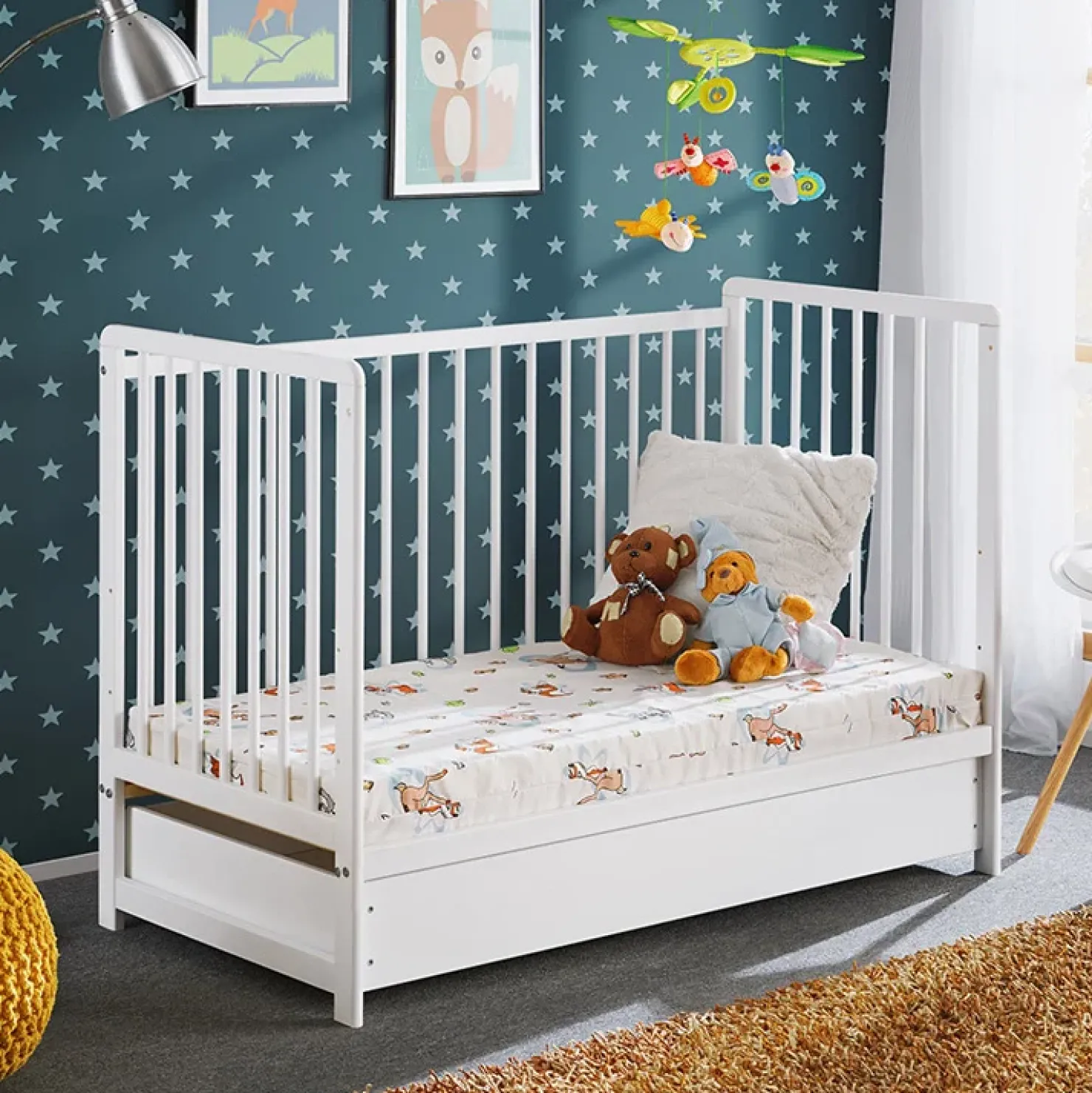 Lettino per bambini con cassetto e materasso 65x124cm bianco Destiny, il letto perfetto per tenere al sicuro il tuo bimbo tutta la notte.