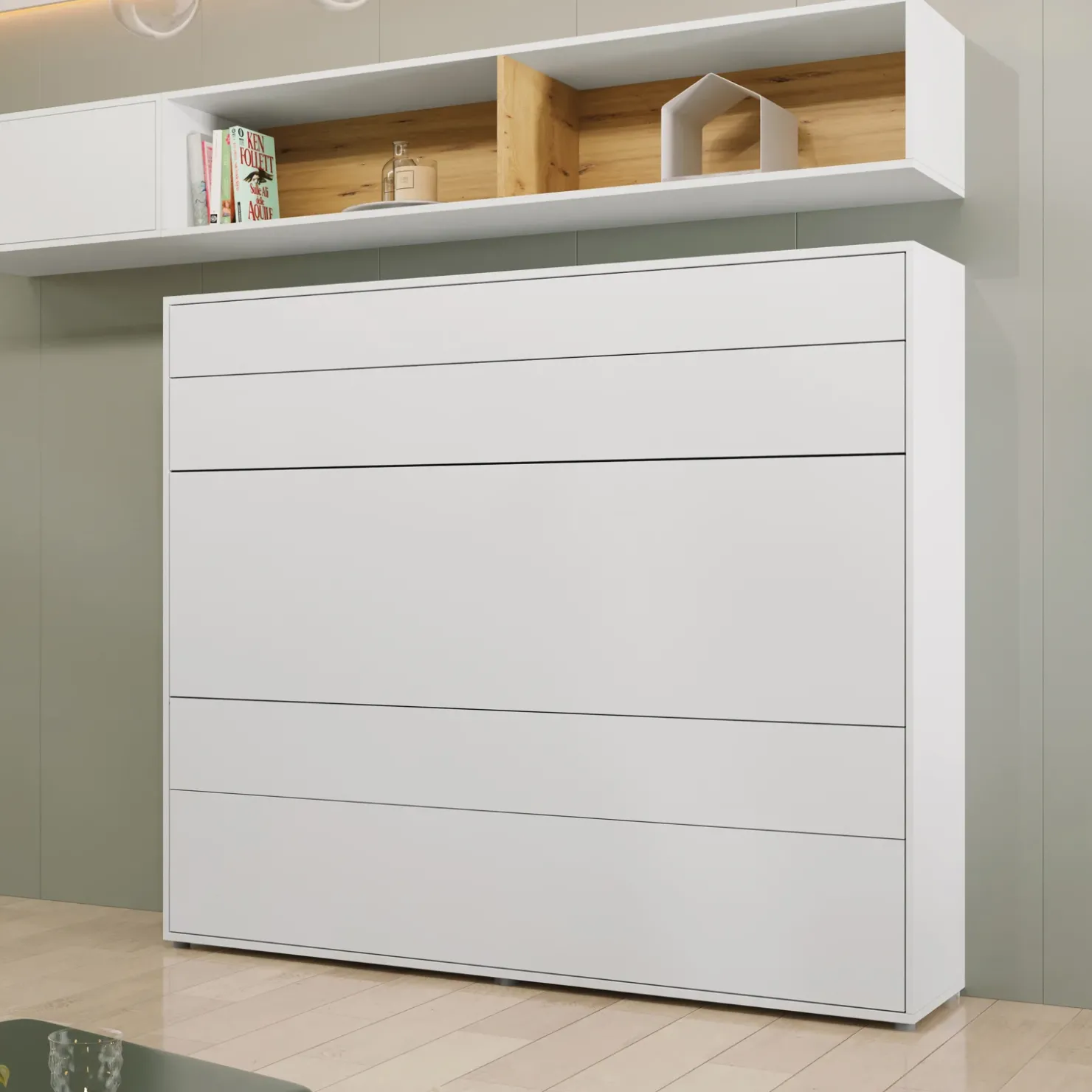 Camelio è il letto a scomparsa ideale per chi desidera ottimizzare lo spazio senza rinunciare al comfort e all’eleganza. Con apertura orizzontale e un design moderno in bianco opaco, si adatta perfettamente a qualsiasi ambiente, dalla cameretta allo studio. Progettato per materassi matrimoniali da 160×200 cm, è dotato di una rete a doghe inclusa, che garantisce il giusto supporto per un riposo rigenerante.