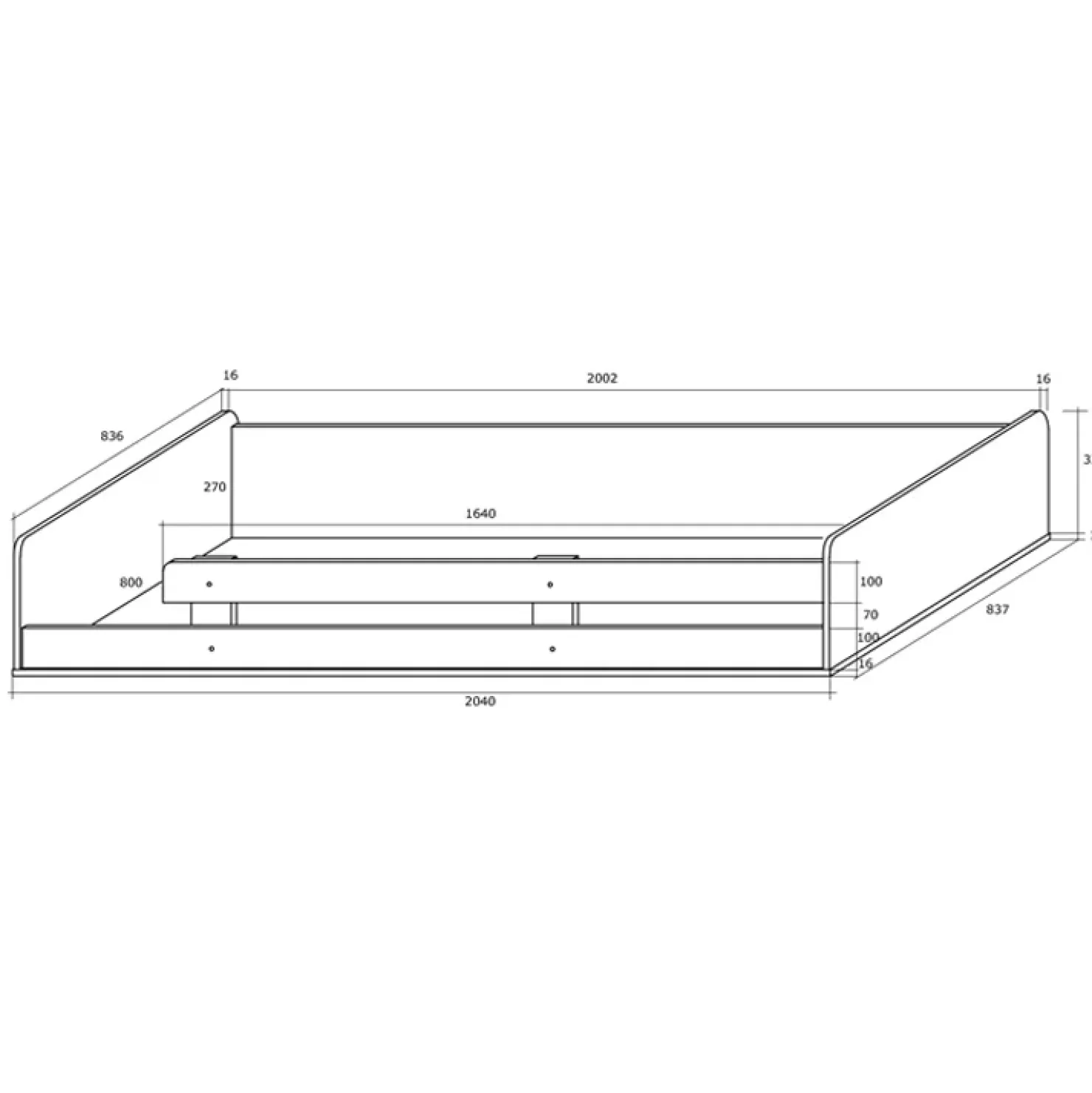 - dimensioni materasso (non incluso): 80×200 cm (altezza max. 10 cm)