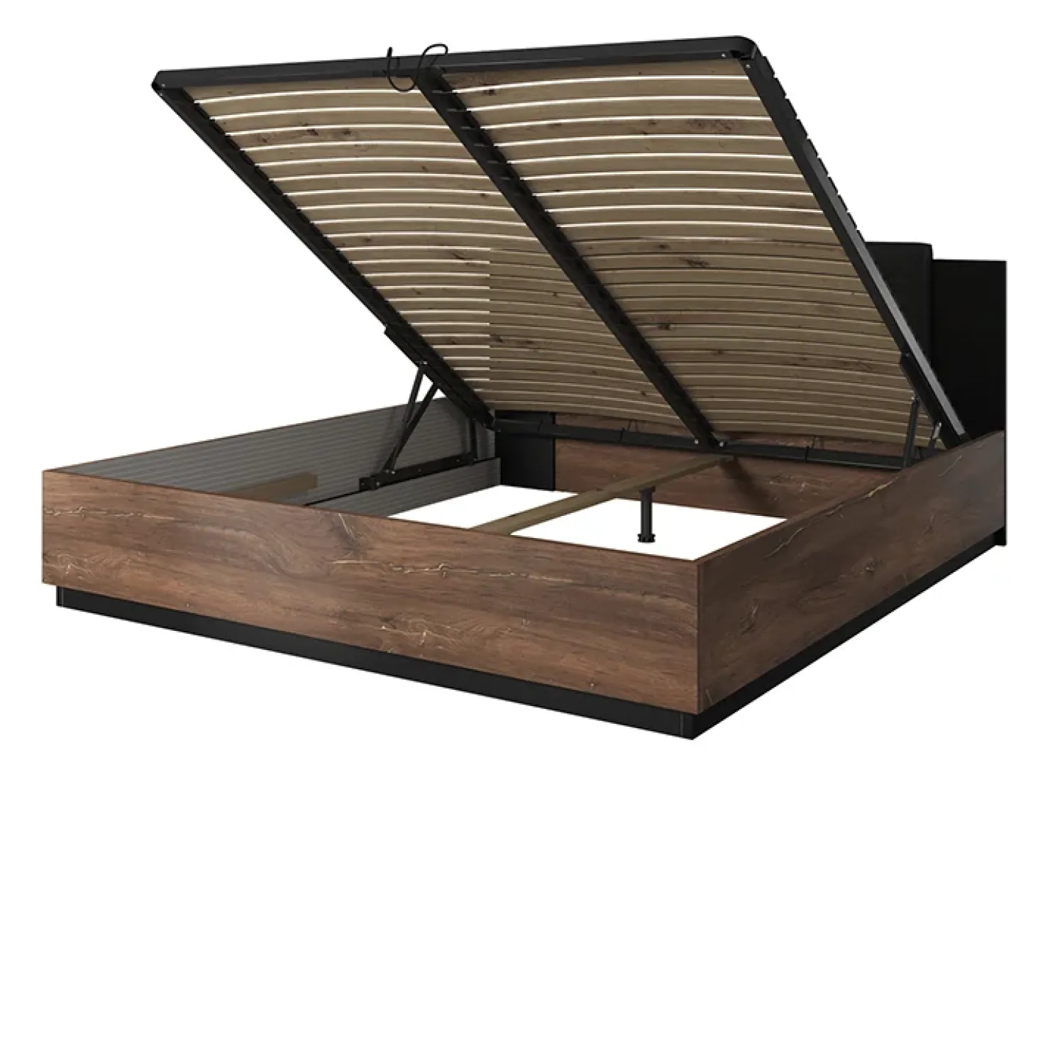 Letto matrimoniale 180x200cm con rete contenitore quercia scuro nero Vulcano: idea d’arredo perfetta per allestire la propria zona notte con cura.
