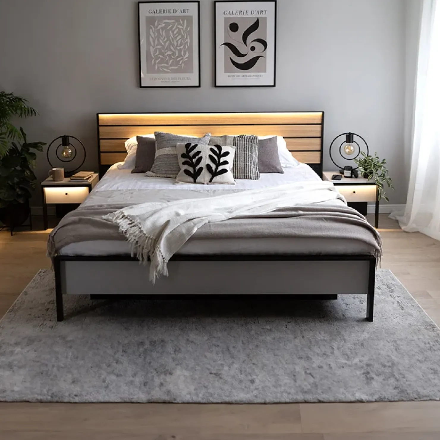 Garnero Arredamenti Letto oversize contenitore 180x200cm con LED e presa USB-C grigio nero rovere Luna Outlet
