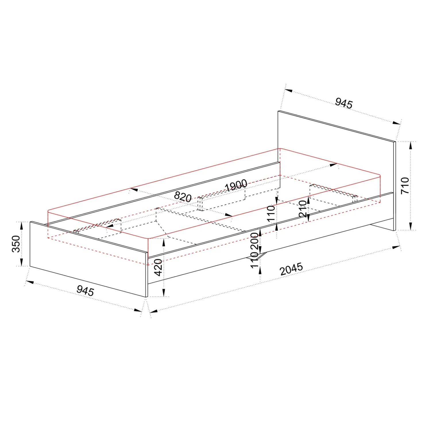 Letto singolo moderno 90X200cm rovere rustico Marco, pratico, semplice e funzionale è il letto perfetto per arredare la stanza dei ragazzi con stile.