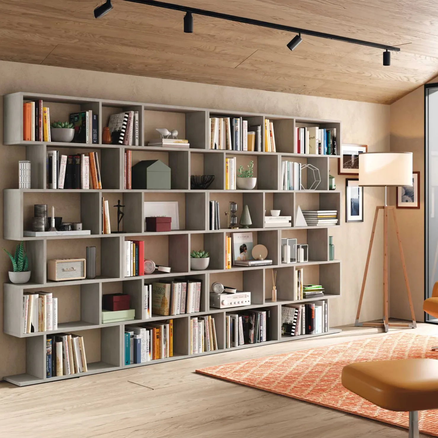Libreria moderna parete soggiorno Shelf cemento: una proposta dal design geometrico e originale, perfetta per arredare in modo funzionale qualsiasi ambiente!