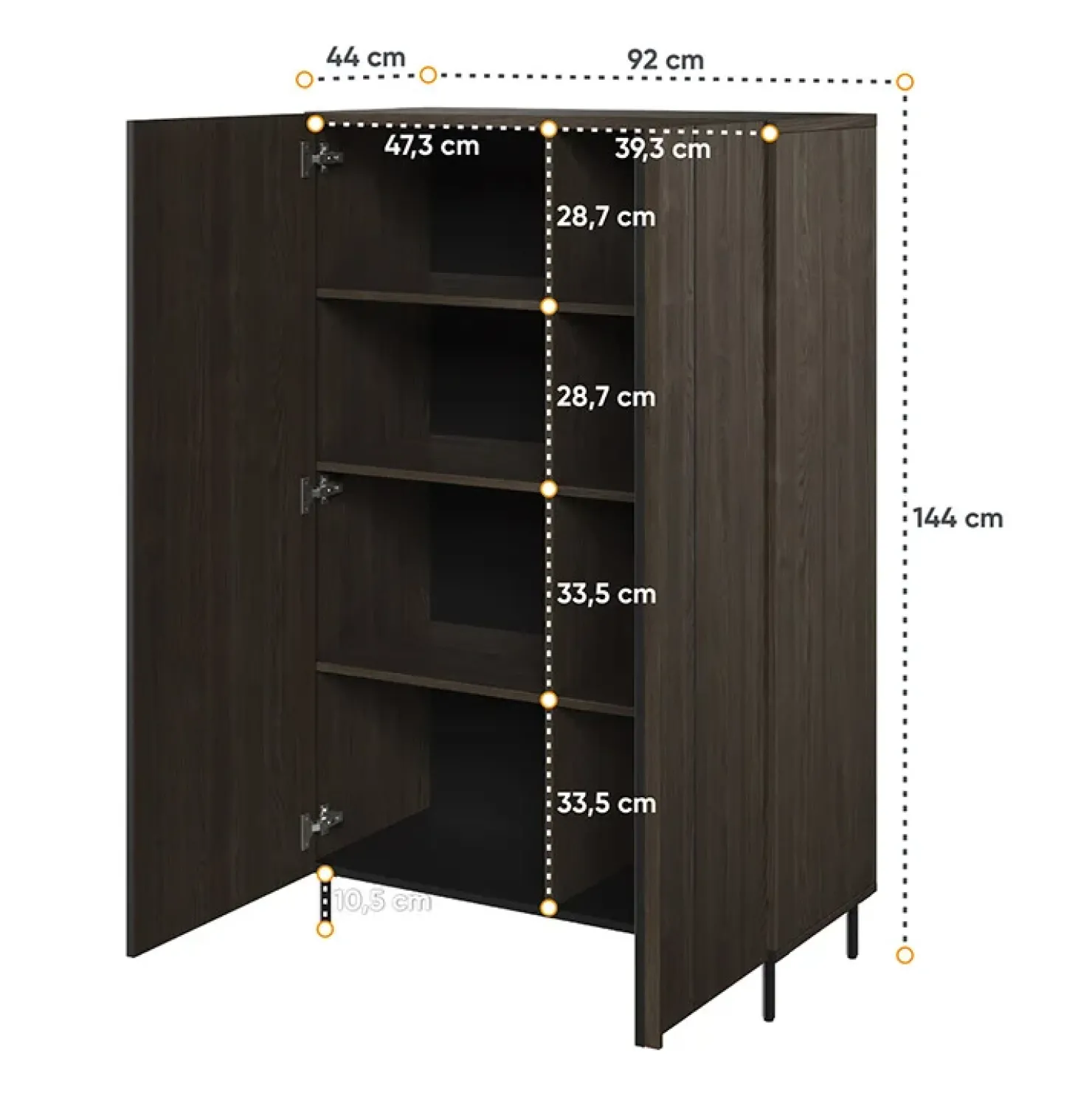 | Dimensioni | L. 92 x H. 144 x 44 cm |