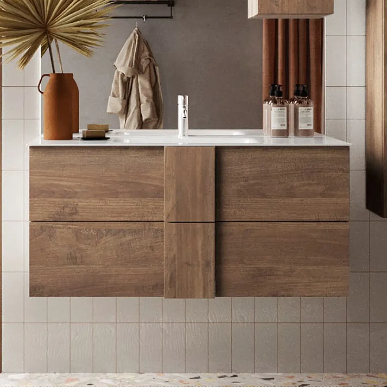 Mobile bagno sospeso un lavabo moderno 100x51cm rovere Alvarez