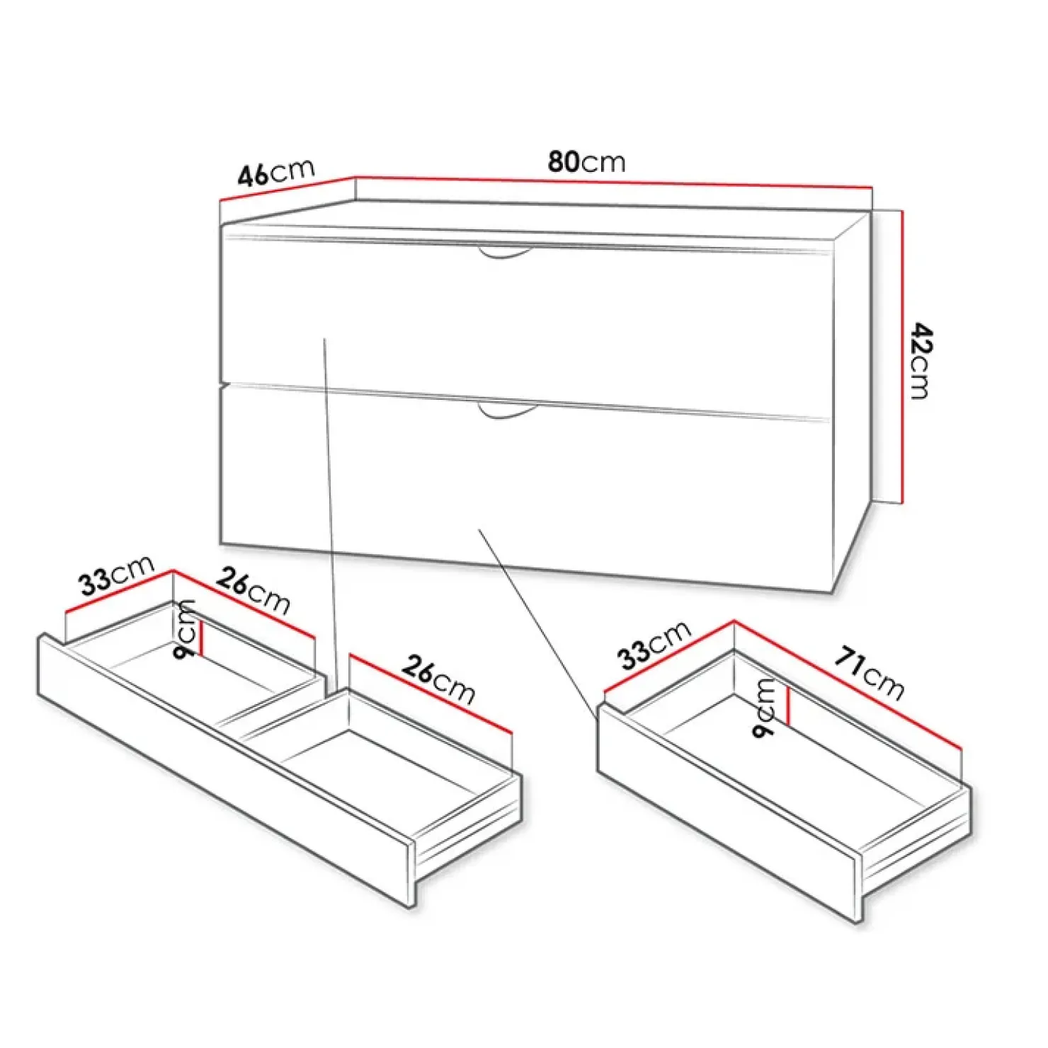 - dimensioni mobile lavabo: L.80 x H.42 x P.46 cm