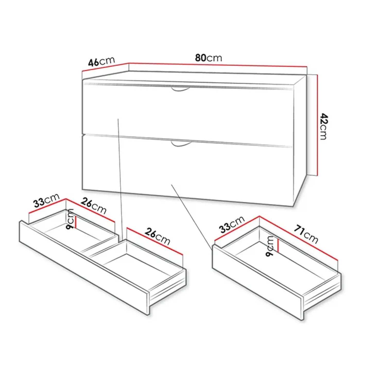 - dimensioni mobile lavabo: L.80 x H.42 x P.46 cm
