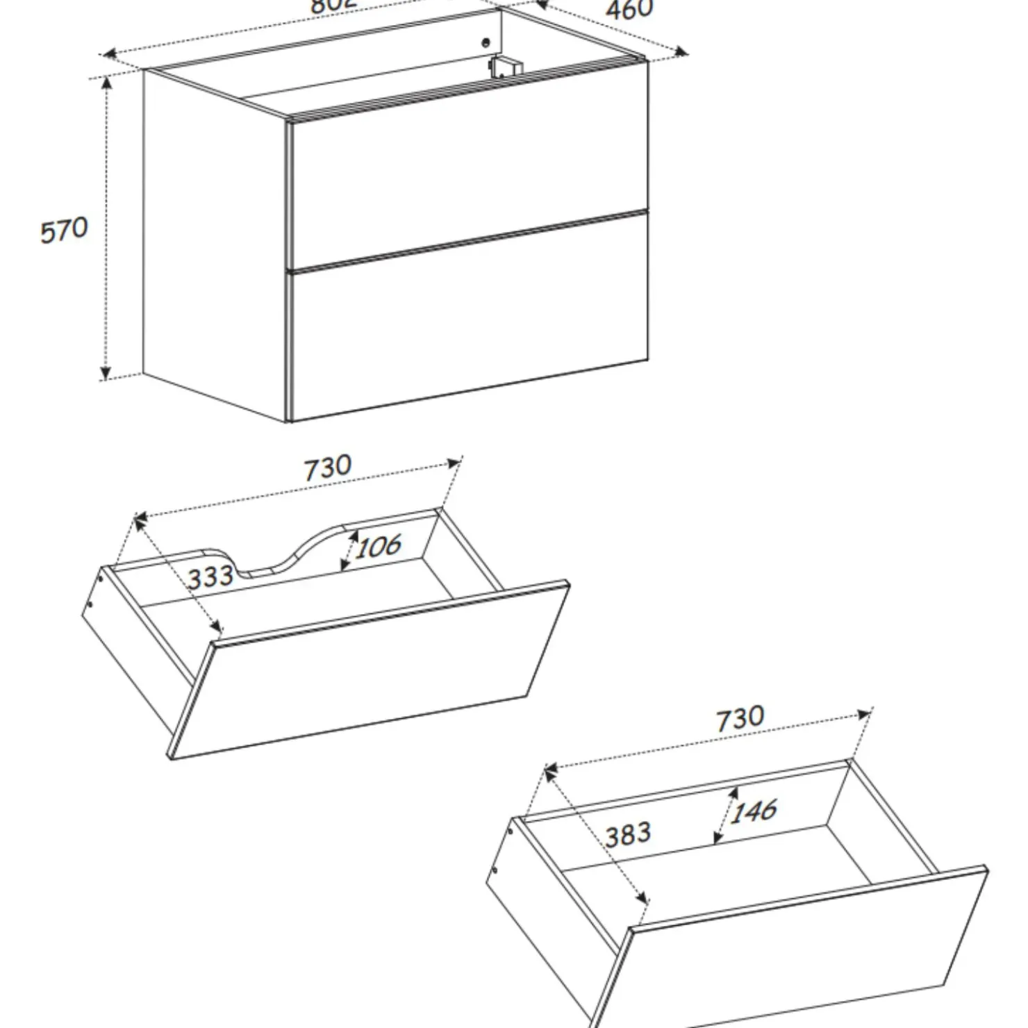 Mobile bagno sospeso 80cm fresato 2 cassetti beige Sand