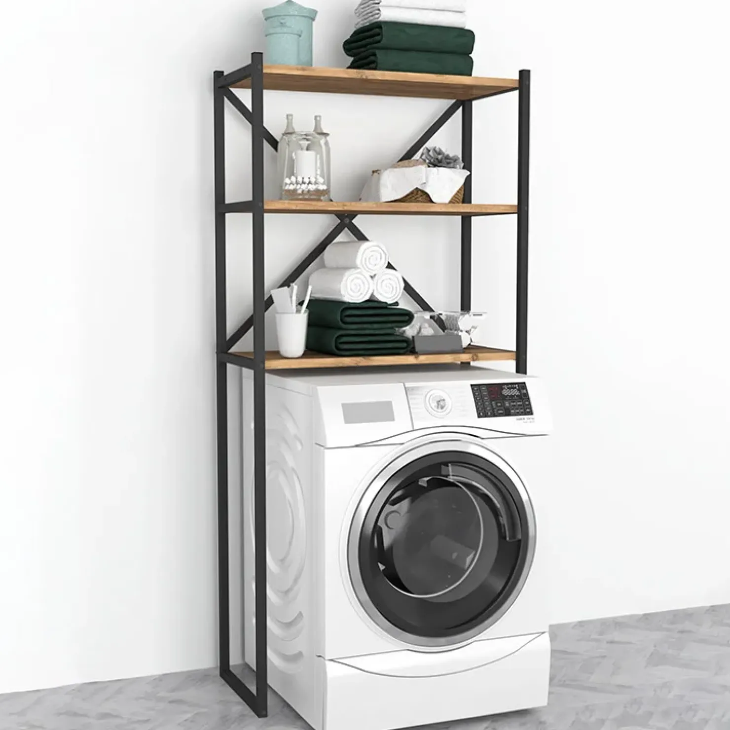 Mobile lavatrice industrial 66x160cm metallo rovere Canarie: stile industrial e soluzione salvaspazio per il tuo bagno.