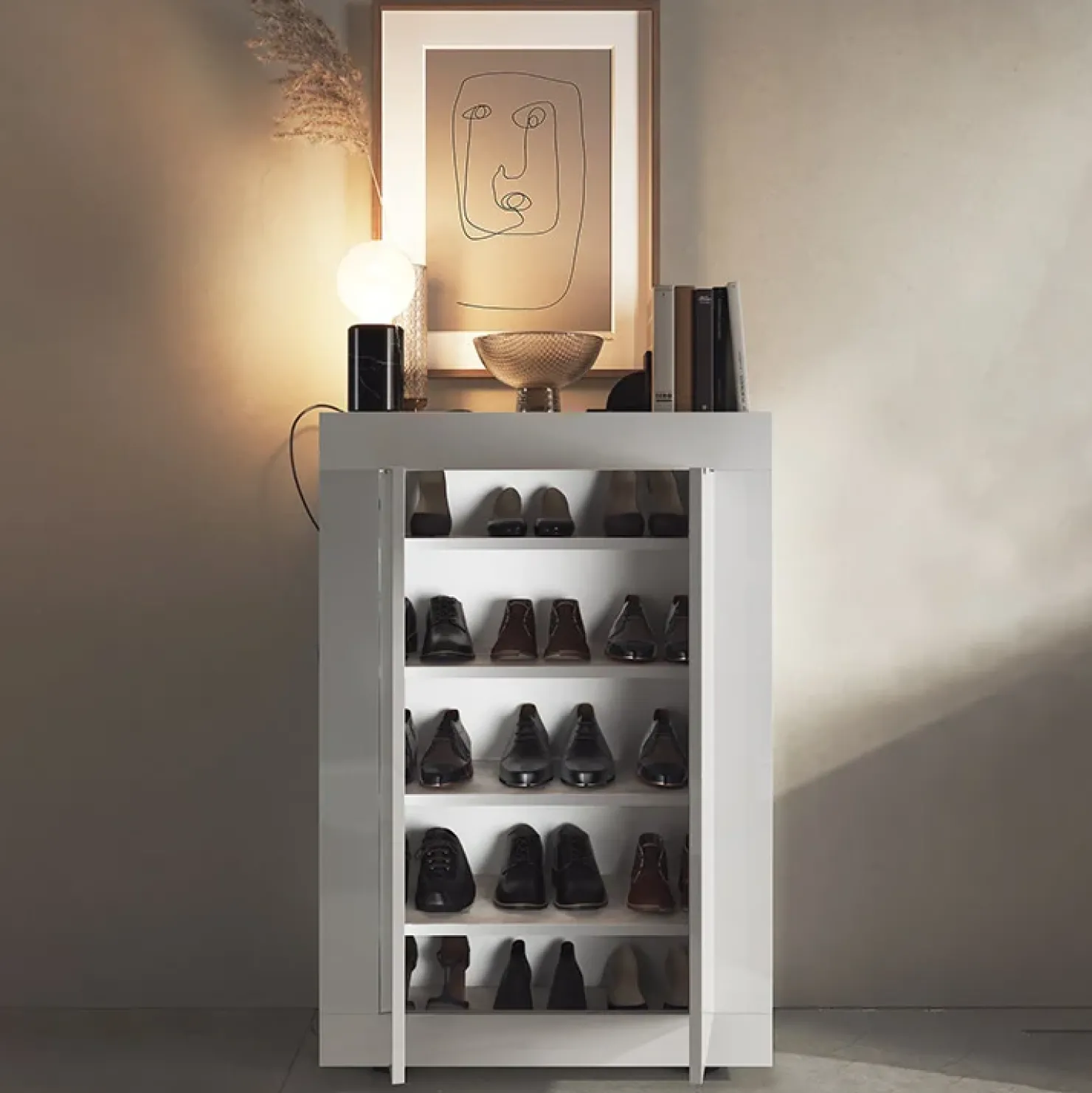 Scarpiera ingresso moderna 78x116cm bianco lucido Eternity, ideale per contenere le scarpe di cui vai più fiero e che vuoi custodire con attenzione.