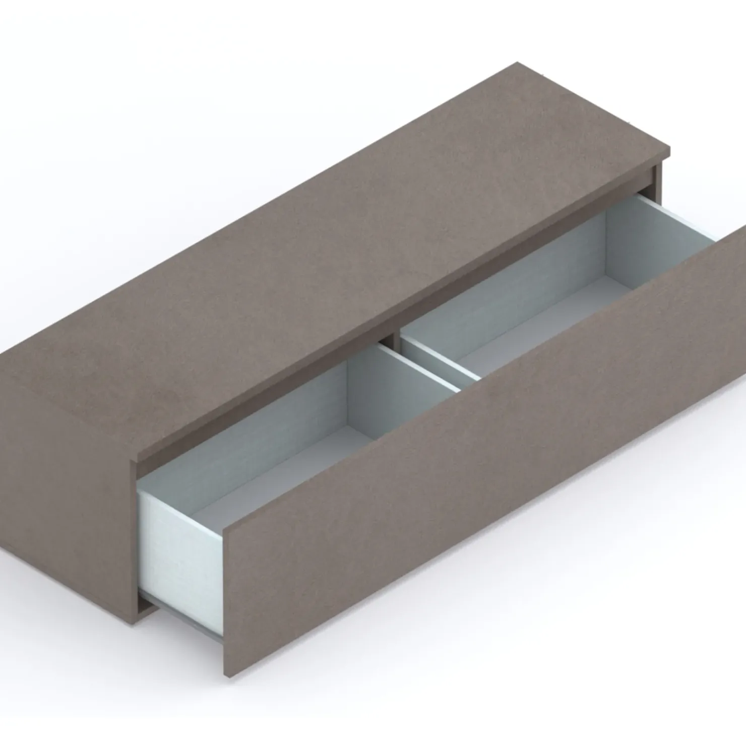 La sua struttura compatta e robusta è pensata per valorizzare sia l’estetica che la funzionalità. Il pezzo forte è il grande cassettone frontale, che si divide al suo interno in due pratici cassetti. Questo sistema intelligente offre uno spazio organizzato e discreto per riporre telecomandi, accessori tecnologici, documenti o qualsiasi altro oggetto indispensabile per il tuo relax quotidiano.