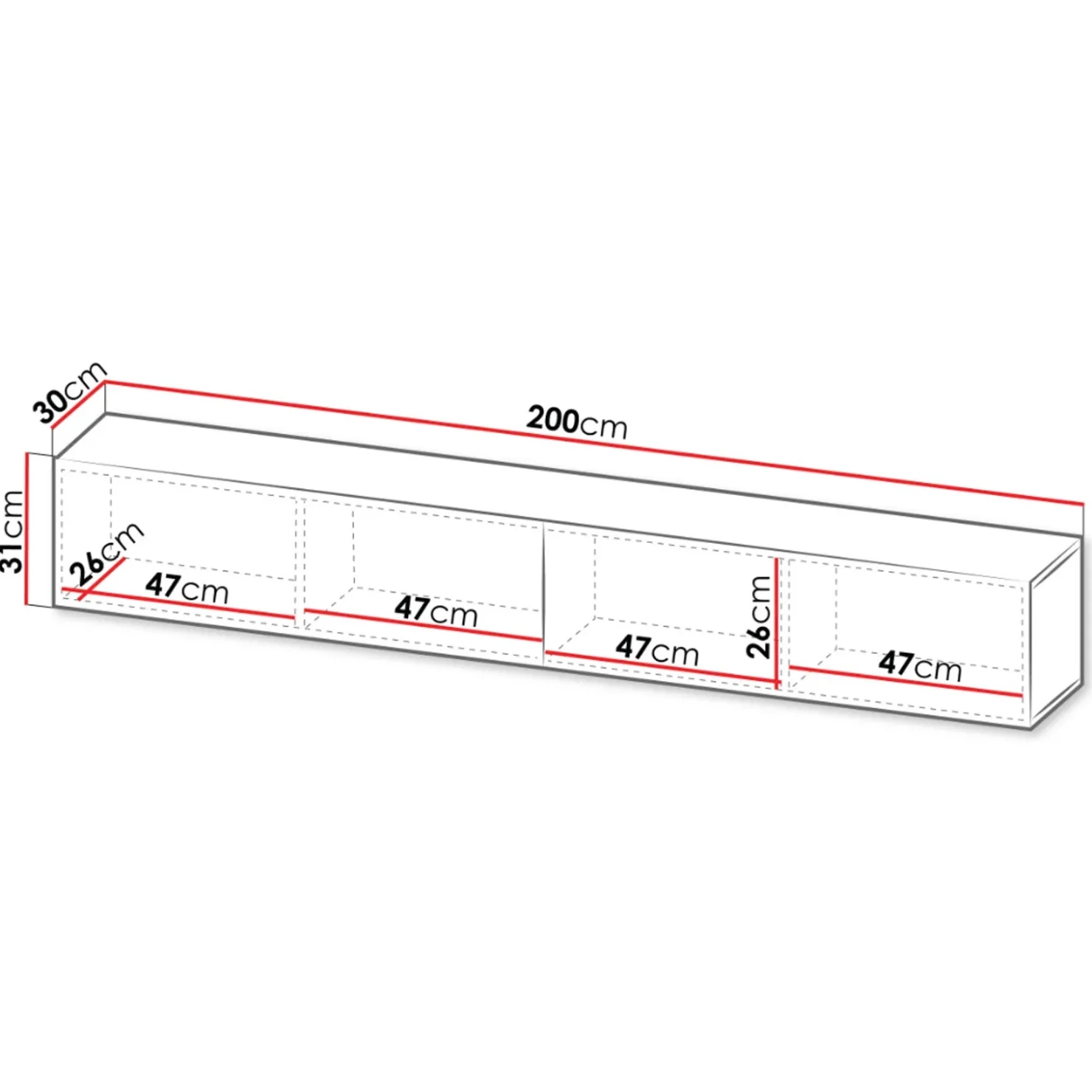 | Dimensioni totali | L.200 x H.31 x P.30 cm |