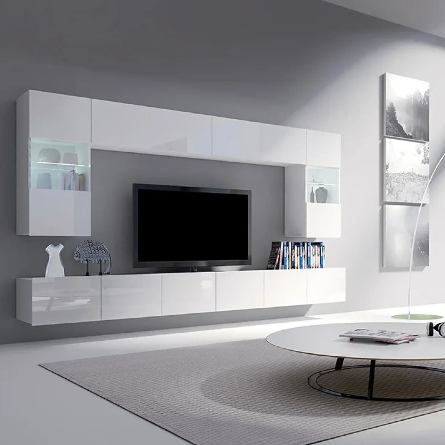 Parete attrezzata 300x180cm bianco lucido Mons