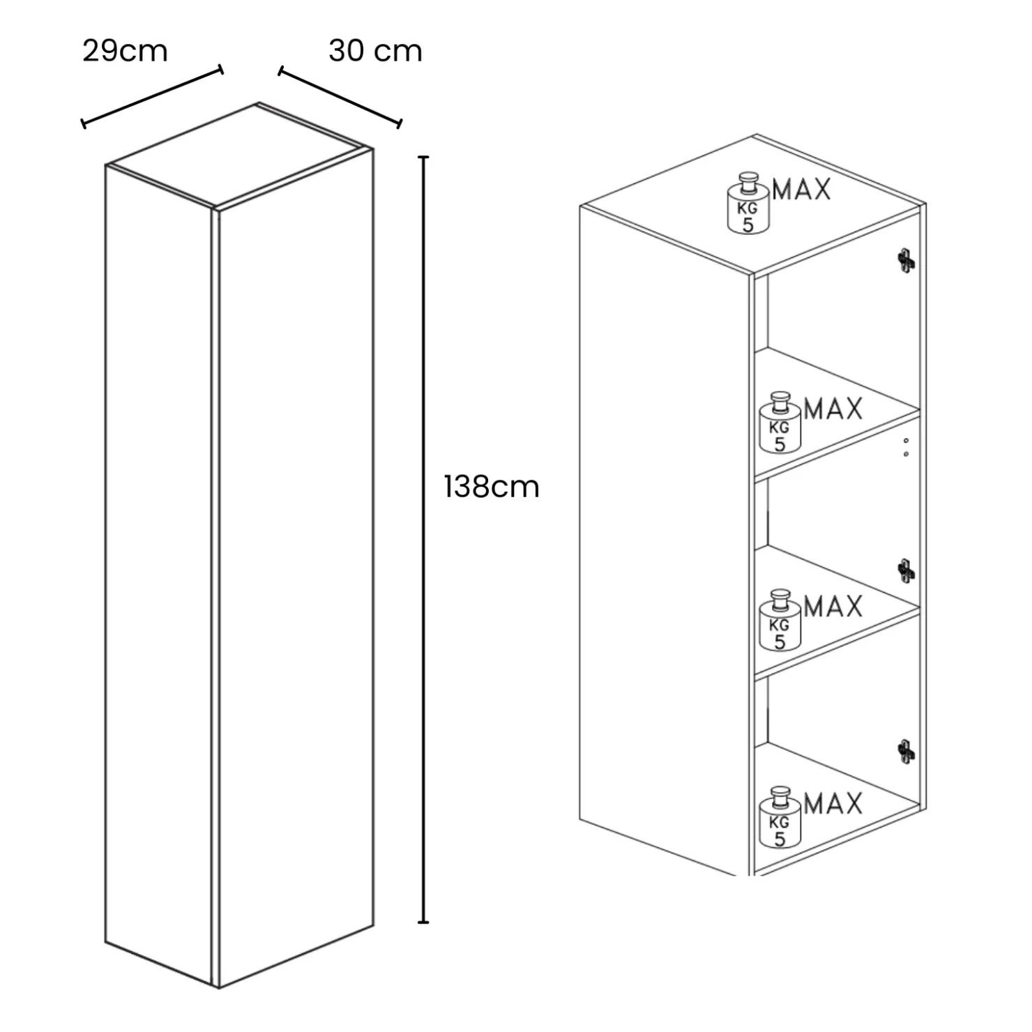 | Dimensioni | L.29 x H.138 x P.30 cm |