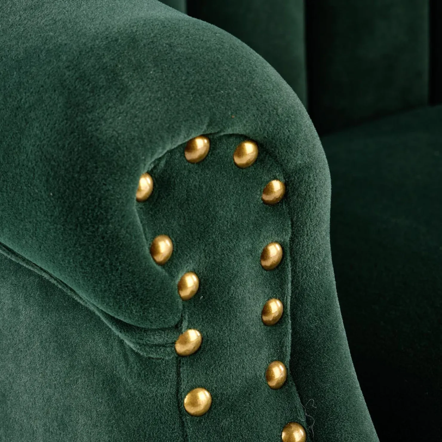 Rivestita in morbido velluto, Mazia è una carezza visiva e sensoriale: la sua texture avvolgente dona calore, e il suo design un tocco di lusso al tuo salotto. I piedini in legno massello, dallo stile classico, aggiungono stabilità e carattere, mentre le borchie dorate lungo i braccioli impreziosiscono la silhouette con un accento sofisticato che richiama l’artigianalità d’altri tempi.